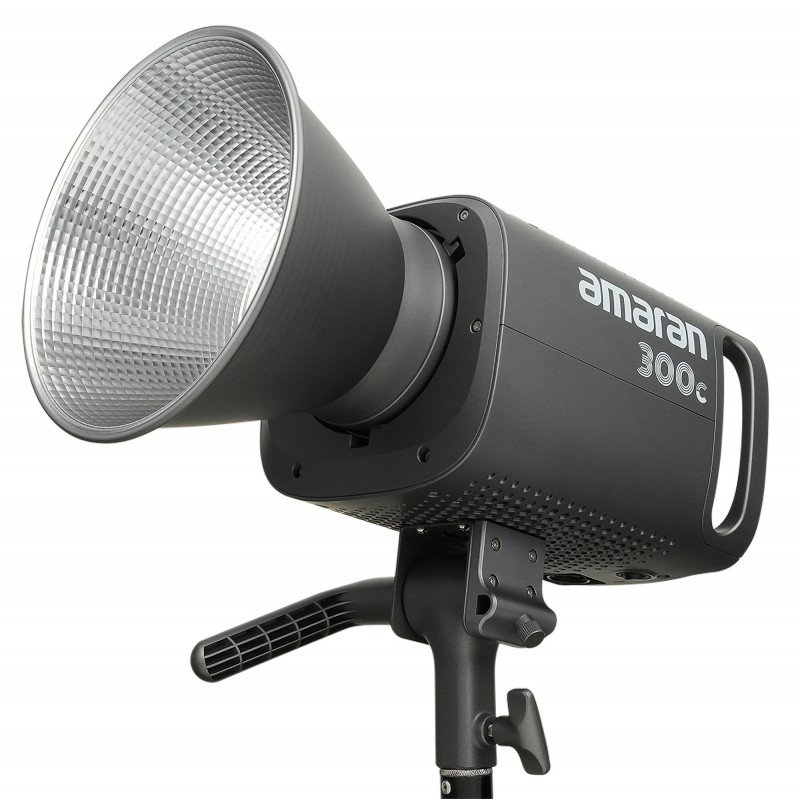 Amaran 300c is a modern LED lamp with a power of 300 W. With the ability to work with colors and CCT adjustment, the device will give you great creative freedom. The lamp is equipped with an RGBWW circuit, which guarantees great lighting quality. This is confirmed by high CRI, TLCI and SSI ratings. This model will work well on a photo set and in a home studio. Bowens mount allows installation of various modifiers. The included Hyper Reflector canopy will allow you to increase the intensity of the light and narrow its beam.