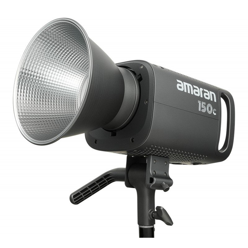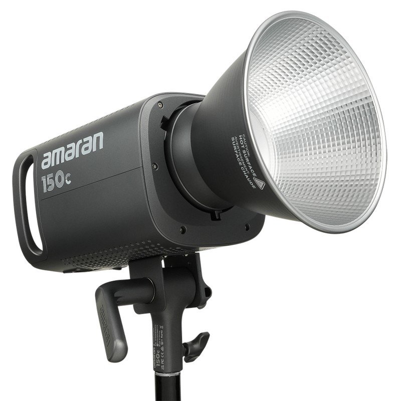 Amaran 150c is a modern LED lamp with a power of 150 W. With the ability to work with colors and CCT adjustment, the device will give you great creative freedom. The lamp is equipped with an RGBWW circuit, which guarantees great lighting quality. This is confirmed by high CRI, TLCI and SSI ratings. This model will work well on a photo set and in a home studio. Bowens mount allows installation of various modifiers. The included Hyper Reflector canopy will allow you to increase the intensity of the light and narrow its beam. The Amaran 150c is also a great choice if you care about remote control or working within a larger setup of equipment. All thanks to the Sidus Link app, which provides a 100m range when you control the lamp with your smartphone. The kit does not lack a lightweight carrying case. Main product features universal LED lamp with 150 watts of power Modern chipset for accurate color reproduction CRI: 95+ / TLCI: 95+ / CQS: 97+ / SSI (Tungsten): 83+ adjustable color temperature from 2500K to 7500K impressive luminous flux of 11196 lm (@ 5600 K) included Hyper Reflector canopy possible to achieve light intensity of 16510 lux 9 preset special effects smooth adjustment of light parameters with knobs compatible with Sidus Link system (remote control and management of light system via mobile app) remote control range is up to 100 meters convenient lamp angle adjustment umbrella holder compact size for ultra-mobility transport case included New possibilities for working with color The Amaran 150c is a revolutionary 150 Watt LED light source with Bowens Mount, designed specifically for independent filmmakers. With tremendous freedom to work with color, this innovative lamp from Amaran will give you tremendous creative freedom. Keen to quickly and perfectly adjust the color of your light? Reach for the Sidus Link app, point your smartphone at the color of your choice and…. done. Equipped with RGBWW LEDs, the Amaran 150c lamp will offer you exactly the color you need. Multiple applications It doesn’t matter if you’re an independent filmmaker, professional cinematographer, photographer or small production company owner. The Amaran 150c lamp will help you achieve the perfect balance between optimal power and full color control. This model will be perfect both on set and in the studio – in small and large spaces. It will allow you to precisely adjust the lighting to your individual needs. Top quality light The Amaran 150c lamp uses the same RGBWW chip found in other Aputure and Amaran products. As a result, it boasts incredible color quality and adjustable color temperature, ranging from 2500K to 7500K. With high CRI and TLCI ratings of 95+, SSI (D56) rating of 71 and SSI (Tungsten) rating of 83, you are assured that the objects you illuminate will look just as you planned. At the same time, the skin of the characters in your productions will retain a natural look! Bowens mount To meet the requirements of any shooting set, the Amaran 150c lamp is equipped with a Bowens mount. Thanks to this solution, you can combine it with dozens of different light modifiers available on the market. The intensity of light can be increased with tools such as the Fresnel 2X lens or the Aputure Spotlight streamer. However, this is not the end of the possibilities. Reaching for one of the unique softboxes (including Aputure Light Dome SE or Aputure Light Octadome 120) will effectively soften or diffuse the light. One of the modifiers is included in the kit. It is a Hyper Reflector canopy with a Bowens mount. By combining it with the lamp, you will achieve light intensity reaching 16510 lux, with a color temperature of 7500 K. Solid construction The design of the Amaran 150c lamp has been improved over the brand’s older models. All this to further improve the user experience, while maintaining compact dimensions for ultra-mobility. The new Bowens mount has been made of metal to successfully hold heavier modifiers. The integrated angle-adjustable handle ensures a stable connection to the tripod. If necessary, it will also allow comfortable “handheld” shining. There is also an umbrella holder on board. Convenient operation The back of the lamp features an LCD screen and 2 ergonomic dials. With just one hand movement, you can smoothly adjust the color temperature or set the selected light color within the HSI palette. You will find all the necessary information on the backlit screen. You can conveniently change the color (hue), saturation (saturation) and brightness (intensity) of the light. The manufacturer also did not forget about G/M (Green / Magenta) correction. Sidus Link app Sidus Link technology gives filmmakers tremendous creative freedom, allowing you to control individual Amaran and Aputure lights or groups of them from your smartphone. The Sidus Link app will provide you with access to all of the lamp’s functions, as well as allow you to modify standard settings and save your own. Lamps running on the Sidus Mesh system can connect to each other, which increases the range of the entire network, giving you great freedom when working with light. Special-effects-rod-from-Hollywood The Amaran 100d S offers 9 built-in special effects that allow you to simulate paparazzi flashes, fireworks, a broken light bulb, lightning strikes, TV, pulsating light, flashes and explosions, among others. With these, you can enhance your videos with a “wow” effect, without having to increase your production budget. V-Lock power supply or batteries The Amaran 150c lamp offers the same 48-volt DC power socket as the Amaran 100 and 200 COB S models, so you can use the included power supply or reach for a more versatile solution. Using the Aputure 2-Bay Battery Power Station, you can power the unit with V-Mount batteries. This will be an ideal choice if you are working outside the studio, in a location where access to an electrical outlet is limited. APUTURE 2-BAY BATTERY POWER STATION IS NOT PART OF THE KIT.