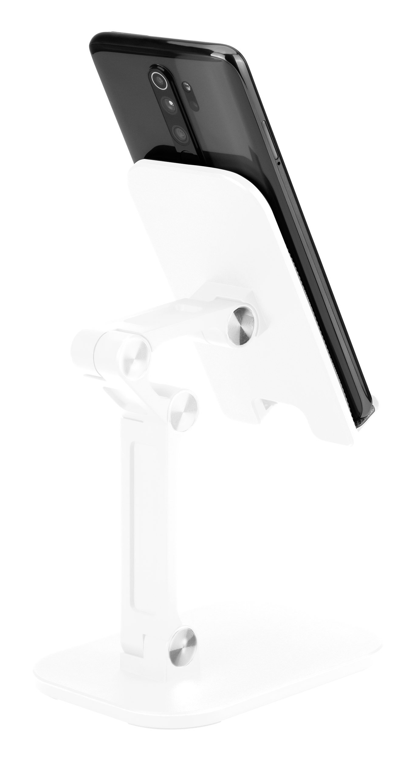 Camrock DPH-001 is a practical desk stand for mobile devices such as a smartphone, tablet or ebook reader. Elegant, foldable customizable stand is an extremely functional gadget that is perfect for home or office. Indispensable when you want to comfortably watch your favorite series on the screen of your phone. Main Product Features foldable design, easy to transport from place to place adjustable tilt angle for optimal viewing position wide compatibility, holder fits most smartphones and tablets available in the market made of durable and durable materials makes it easy to carry around. made of durable materials stable stand with anti-slip finish simple yet stylish design can be used as a simple tripod available in two colors (white / black) Convenient position Holding your phone or tablet in your hand while watching a long movie is not very comfortable. Thanks to movable hinges you can set the stand in the right position and sit comfortably while watching a movie. Forget about back and neck pain. You will also free your hands, which you can use for example to peel potatoes for dinner. Stable and safe construction The rubber finish on the handle ensures a good grip on your smartphone, while the foam non-slip mat prevents the stand from moving around on your desk top. It also protects delicate furniture from damage. Universal use Camrock DPH-001 phone holder is very universal, you can put on it a small smartphone, large tablet or ebook reader. The maximum size of such a device should not exceed 12.9 inches (screen diagonal). Convenient charging A special indentation allows you to charge your smartphone while it rests comfortably with its back against the stand. You can have long video chats with your loved one on Skype or watch funny videos on TikTok all night without worry. Always where you are The stand is lightweight and has a foldable design, you can easily store it in your backpack or small bag. Take it on the go and put on the nightstand in your hotel room. Another advantage of using such a stand is that you will never forget where you put your phone (as long as you put it just on the stand). Elegant design element The stand is extremely sleek and takes up very little space on your desk. It will match the decor of a modern apartment or office. It is available in two classic and very universal colors, white and black. Specification model: Camrock DPH-001 color: white material of construction: plastic, foam, rubber arm adjustment range: 120° base dimensions: 9 x 12.5 cm support dimensions: > 6.9 x 12 cm carrying dimensions: 9 x 5.2 x 13.6 cm maximum height: 25.5 cm weight: 220 g Compatibility smartphones and tablets with screen sizes up to 12.9 inches Kit contents Camrock DPH-001 phone mount – white