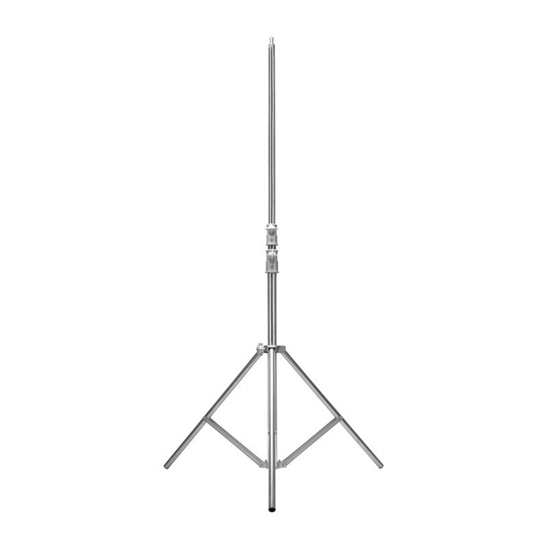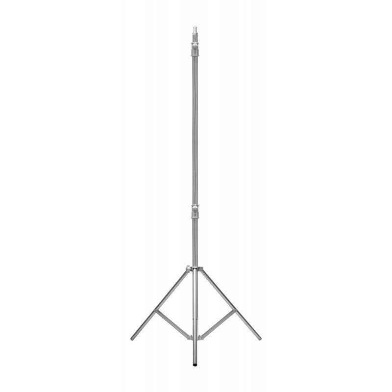 Camrock FC-288S is a professional lighting tripod designed for the most demanding filmmakers and photographers. With an adjustable height range of 100 to 280 cm and a maximum load capacity of 8 kg, it provides great flexibility and perfect stability while working. Robust butterfly clamps allow smooth height adjustment, and stainless steel construction guarantees durability and resistance to harsh weather conditions. The universal mounting system with a standard 16mm mandrel and 1/4″ thread allows you to install dozens of different devices. Main Product Features professional stainless steel lighting tripod height adjustment from 100 to 280 cm maximum load capacity of 8 kg 3 sections of the central column solid butterfly clamps that allow smooth height adjustment equipped with a standard 16 mm pin terminated with a 1/4″ high quality and weather resistance stable construction and wide leg spacing From 100 to 280 cm height Camrock FC-288S lighting tripod is an indispensable tool for professional filmmakers and photographers who are looking for flexible solutions when working on set. Its height can range from 100 to 280 cm. With this tripod you will gain even more creative freedom, and any light source you reach for will be exactly where you need it. Convenient operation Thanks to the butterfly clamp system, operating the Camrock FC-288S lighting tripod is extremely easy and fast. You can adjust the height of the center column to the desired position in just a few seconds, allowing you to get your equipment ready for use in no time. Whether you’re working under time pressure on a film set or on a photo shoot that requires lightning-fast reactions, this system will provide you with optimal convenience. Sturdy construction The Camrock FC-288S tripod is a tool designed for the most demanding filmmakers, photographers and lighting professionals. Made of stainless steel, it ensures not only durability, but also resistance to harsh weather conditions and intensive use. Thanks to its solid construction, you can be sure that the tripod will serve you for many years. This is not only an investment in durability, but also a guarantee of stability and safety during any photographic or recording session. Universal mounting system The Camrock FC-288S lighting tripod is equipped with a popular 16 mm mandrel, compatible with a wide range of equipment available on the market. You can conveniently install a variety of accessories on it, from LED lights to traditional studio lights, reflectors or even flashes. The 1/4″ thread on the top allows you to mount additional accessories, such as heads or mounts. In an emergency situation, you can also install a camera on the Camrock FC-288S tripod. Specification model: Camrock FC-288S color: silver material: stainless steel Mounts: 1/4″ shank 16 mm number of sections: 3 section diameter: 35 / 30 / 25 mm minimum height: 1000 mm maximum height: 2800 mm max. lifting capacity: 8 kg weight: 2.1 kg Set contents Camrock FC-288S lighting tripod