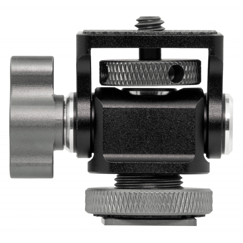 The Camrock Z3 mount is a multifunctional solution for all photography and film enthusiasts who want to expand the functionality of their equipment. The robust aluminum construction guarantees durability, and the rubber coating provides additional protection for the devices. Thanks to its compact dimensions (47 x 48 x 25 mm) and weight of only 50 g, the Camrock Z3 fits almost anywhere. A cold shoe and 1/4” thread enable convenient mounting of microphones, flashes or viewfinders on tripods, camera rigs or camera sliders. The device can be adjusted precisely thanks to the 180° vertical and 360° horizontal adjustment range. A sturdy knob and locking ring prevent unwanted movement and guarantee secure mounting. Key product features multifunctional mount for photo and video creators durable aluminum – lightweight yet sturdy construction compact dimensions (47 x 48 x 25 mm) low weight (50 g) – ideal support for traveling and outdoor sessions cold shoe mount – quick installation of LED lamps or a preview screen, among other things 1/4” thread – can be mounted on tripods and camera rigs 180° tilt adjustment (90° forward and 90° backward) 360° rotation around its own axis rubber coating protects mounted devices from scratching and ensures a secure grip The metal knob guarantees a secure hold Compatible equipment includes microphones, flash units, viewfinders, smartphone holders, LED lamps, wireless receivers, battery mounting plates, etc. Support for creative minds The day of shooting has just begun. Every minute is precious. Time is running out and you have to juggle with various accessories: LED lamps, microphones or monitor screens. This is exactly when the Camrock Z3 multifunctional mount becomes an indispensable work companion. The well-thought-out aluminum construction allows you to easily connect various tools and accessories and securely mount them on a camera or tripod, saving you time and stress. Dozens of uses The Camrock Z3 is equipped with a standard cold shoe mount, making it easy to attach it to a camera sled, a camera cage or an LED lamp. The 1/4” thread, on the other hand, allows it to be installed on a tripod or other mounting base. This flexibility allows you to adapt to the needs of a film or recording set in an instant – from a microphone to a flash to a wireless transmission receiver. Quick position adjustment Don’t waste time on complicated settings! The Camrock Z3 offers smooth movement of 90º degrees forward and 90º degrees backward, as well as the ability to rotate 360º horizontally. You can lock the optimal position with the knob and ring. No matter where you are or what you plan to capture, you can adjust the device’s setting in one move to get the perfect shot or the best sound quality. High-quality aluminum One of the key features of the Camrock Z3 mount is its durable and lightweight aluminum housing. The rubber coating on the top effectively protects your device from scratches and provides even better grip. So you can focus on your creative work without worrying about something coming loose or getting damaged at the most inopportune moment. Specification model: Camrock Z3 material: aluminum alloy mounting points: 1/4“ female thread 1/4” male thread cold shoe dimensions: 47 x 48 x 25 mm weight: 50 g Package contents Camrock Z3 multifunctional mount manual hex key