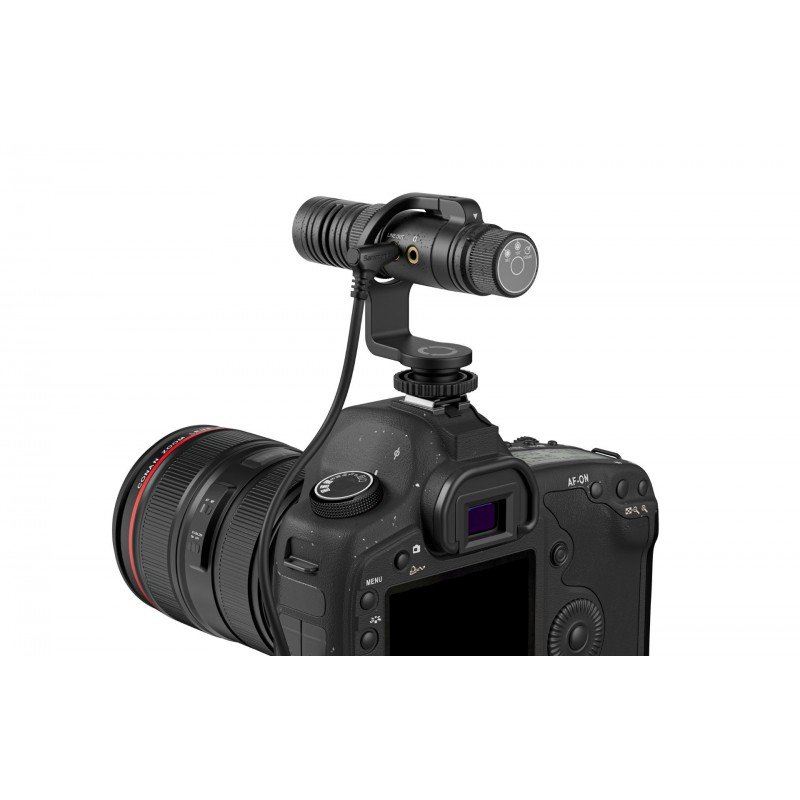 The Saramonic Vmic Mini S is a high-quality condenser microphone that you can successfully connect to cameras, camcorders and smartphones equipped with a 3.5mm Mini Jack socket. The ultra-lightweight housing will ensure optimum working comfort, and a special handle will allow you to rotate the device 360º while reducing shock and vibration. A special ASMR mode will provide exceptional sound depth, inducing a pleasant tingling sensation in the body. Depending on your needs, you can change the characteristics of your recordings, capturing sounds in 360º or collecting only those that reach the capsule at the front. The kit does not lack a padded zipped case, a deadcat wind shield and the necessary cables. Main product features multi-purpose condenser microphone for cameras and camcorders ideal for use with DSLR cameras, mirrorless cameras, smartphones and video cameras a great choice for youtubers, vloggers, tiktokers special mode allows you to record high quality ASMR footage unidirectional audio recording in 360º mode 120º mode to record only those sounds that reach the microphone in front ergonomic dial for convenient switching between microphone modes fast and convenient installation with cold foot vibration and shock-isolating cushioning system, allowing the microphone to rotate 360º 3.5mm mini jack headphone socket for comfortable audio monitoring included deadcat wind shield and 2 cables all enclosed in a robust padded zipped case Soothing ASMR sounds ASMR videos, in which softly spoken phrases, whispers and a variety of sounds give listeners a pleasant tingling sensation in the head and neck area, are becoming increasingly popular on YouTube. If you want to create such footage yourself, the Saramonic Vmic Mini S condenser microphone for cameras and camcorders is the ideal choice. It offers a special ASMR mode in which the device picks up sound directionally, providing unprecedented richness and depth of sound. Recordings created with it are sure to have the desired effect, providing your viewers or listeners with a relaxing experience. Sound in 120º or 360º A knob on the rear of the unit allows you to switch between modes: ASMR, 120º and 360º. By changing the sound collection characteristics, the Saramonic Vmic Mini S condenser microphone for cameras and camcorders can be used in a variety of situations. It all depends on the specific recording you are doing. In 120º mode, you can record only those sounds that reach the capsule at the front. This is ideal if you want to record your voice clearly. If you want to capture the ambience of your surroundings, take advantage of the 360º omni-directional sound collection feature. Great recording quality The sound recorded with a microphone built into a camera or camcorder can often deprive your video productions of a “wow” effect. Choose the Saramonic Vmic Mini S microphone to make sure you and your interlocutors can be heard loud and clear! You can conveniently connect it to devices equipped with a 3.5mm mini jack socket, such as camcorders, cameras or smartphones. The device will ensure broadcast quality sound in your video productions! Real-time monitoring Audio recording often requires the quality control that headphones provide for creators. On the housing of the Saramonic Vmic Mini S condenser microphone, there is no shortage of 3.5mm mini jacks to which you can easily connect them. Monitoring takes place in real time, so there is no delay or unpleasant echo. Plug & Play When working with the Saramonic Vmic Mini S condenser microphone for cameras, camcorders and smartphones equipped with a 3.5mm mini jack, you don’t have to worry about running out of power. The device works with the Plug & Play system. This means that you simply plug it into the equipment you are recording your videos with. No batteries, no chargers and no built-in rechargeable batteries! Vibration and shock isolation The Saramonic Vmic Mini S condenser microphone for cameras and camcorders features a special shock and vibration reduction system. The ergonomic design of the unit’s housing isolates the capsule from unwanted movements, clicks or knocks that could interfere with the sound quality during recording. Thanks to the swivel base, the position of the microphone can be adjusted in 360º. Specification Model: Saramonic Vmic Mini S Type: capacitive / condenser Bandwidth: 360º mode: 50 Hz – 18 kHz 120º mode: 75 Hz – 18 kHz ASMR mode: 75 Hz – 18 kHz Characteristics: 360º mode: omnidirectional 120º mode: cardioid ASMR mode: cardioid Sensitivity: 360º mode: -33 ± 2 dB 120º mode: -36 ± 2 dB ASMR mode: -30 ± 2 dB signal-to-noise ratio: 78 dB SPL Outputs: headphone, 3.5 mm (mini Jack) 3.5 mm TRRS (mini Jack) dimensions: 24.4 x 107.7 mm weight: 72 g Kit contents Saramonic Vmic Mini S condenser microphone for cameras and camcorders stiffened zippered carrying case deadcat cover 3.5 mm TRRS / 3.5 mm TRS cable (for cameras and camcorders)