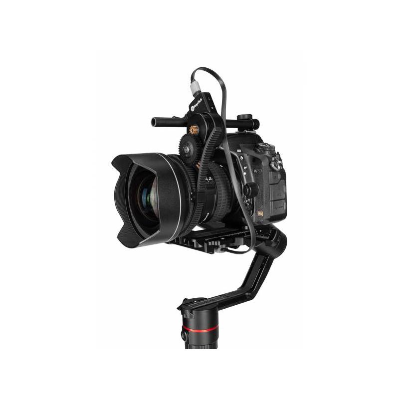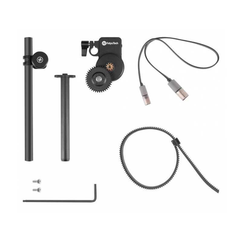 The FeiyuTech Follow Focus V2 is an advanced focus module designed to work with FeiyuTech’s AK series gimbals. The accessory allows you to control the setting of the focus plane using the multifunction knob located on the stabiliser handle. Additional Features Follow Focus V2 is an expanded version of the Follow Focus V1 module. Equipped with brushless motors, it has a separate control panel that allows stroke calibration and auto focus programming. Ease of operation The kit consists of an eclectic motor and a clamp that is fitted to the lens focus ring. Thanks to the sprocket with which both elements are equipped, it is possible to move the ring with the motor. Fast installation and versatility Thanks to the well-thought-out mounting system, the user is able to easily and quickly attach the focus controller to the gimbal, and the wide range of adjustments means that the Follow Focus will work with almost any lens used for filming. Specification dimensions: 7.2 x 5.7 x 3.3 diameter of attachment band: 11.36 cm weight: 80 g material: plastic, rubber Compatibility Feiyu Tech AK series gimbals Kit contents Follow Focus module Mounting strap Mounting system