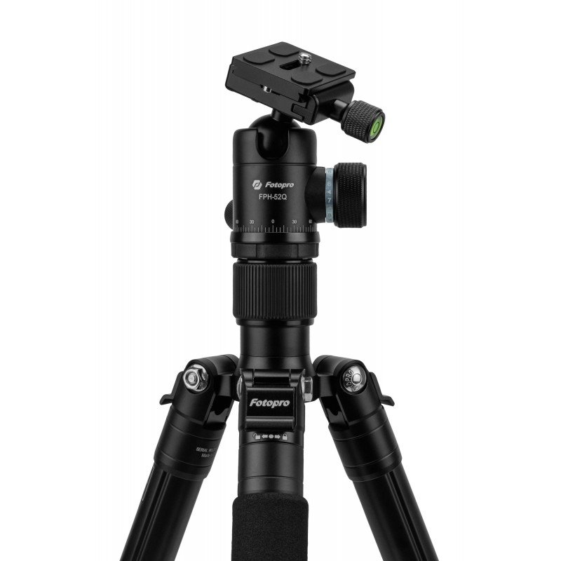 Fotopro F5 is a reliable tripod made of durable aluminum and magnesium alloy. It offers a maximum working height of 158.5 cm and, weighing only 1.53 kg, can handle a maximum load of up to 8 kg. When folded, it measures just 43 cm, making it easy to carry. The model features 4 leg sections, quick “Flip Lock” clamps and a flip-up center column, which macro photography enthusiasts are sure to appreciate. It comes with a precision FPH-52Q ball head with 360° scale, levelers and a quick-mount plate supporting the Arca-Swiss standard. A detachable leg finished with foam lining for a comfortable grip can serve as a monopod. The tripod also features rubber feet and a metal hook for installing additional weight. A carrying bag is included. Main product features Universal tripod offering a maximum working height of 158.5 cm its weight is only 1.53 kg 8 kg maximum load it measures 43 cm when folded 4 sections of legs that unfold with “Flip Lock” clamps the detachable leg protected by foam lining can act as a monopod the possibility of reversing the central column allows you to get almost close to the ground with the camera included precision ball head FPH-52Q 360° scale for precision when shooting panoramic images levels for easy precise tripod positioning Arca-Swiss compatible quick release plate, protected by silicone lining rubber feet for good grip on flat surfaces metal hook at the bottom of the center column for hanging additional load transport bag included Sturdy and reliable Fotopro F5 is a reliable tripod that will work well in the hands of any photography enthusiast. Its construction based on solid aluminum and magnesium alloy guarantees not only strength, but also resistance to damage and corrosion. Regardless of weather conditions or intensity of use, this tripod will stand up to the greatest challenges. It will be perfect for both professional photo shoots and hiking in the field, where equipment reliability is especially important. Thanks to its top-notch build quality, the Fotopro F5 tripod is an investment for years to come. Precision head included The FPH-52Q ball head is characterized by exceptional mobility, precision and versatility. It is ideal for high-speed sports photography as well as static landscapes and portraits. The FPH-52Q has two independent and convenient to use dials. One of them allows you to smoothly adjust the strength of the ball locking clamp. The other knob controls the movement of the rotating head base. It carries a 360° scale, which will facilitate precise panning. The head is compatible with quick-mount plates made in the popular Arca-Swiss standard. Three levelers will allow you to perfectly position your camera and get perfect shots in any field conditions! Pod and monopod in one Are you concerned about ultra-mobility? Or perhaps your new photography or film project requires lightning-fast action where every second matters? If so, the Fotopro F5 tripod will be the perfect choice. You can unscrew one of the legs at any time and turn it into a monopod when connected to the head. This is the perfect solution when your work space is limited or you need to work even faster without losing the stability of your shots. The Fotopro F5 tripod gives you complete freedom and flexibility so you can focus on creating the highest quality content without compromise. Upside down The Fotopro F5 tripod with FPH-52Q ball head is a versatile tool for photographers who work on the go, in the studio or at home. The option to invert the center column will allow you to shoot closer to the ground, which is sure to be appreciated by product photography and nature macro enthusiasts. Fast and convenient unfolding The four leg sections of the Fotopro F5 tripod are locked with a reliable and quick-to-use “Flip Lock” clamp system. Such a solution will allow you to precisely adjust their length to your current needs in seconds and quickly get ready to work with your camera or camcorder. The working height of the tripod can range from 42.8 cm to 158.5 cm. This range will allow you to create creative shots from different perspectives. Join the #photopro family As you embark on an amazing journey full of unique frames and shots, don’t forget to bring a good tripod with you. Share your great photos and videos with us by tagging us on Facebook and Instagram See you on the trail! Specification model: Fotopro F5 with FPH-52Q ball head – black color: black material: aluminum and magnesium alloy number of leg sections: 4 max. leg diameter: 26 mm minimum working height: 42.8 cm maximum working height: 158.5 cm height in transport position: 43 cm maximum load: 8 kg weight: 1.53 kg Set contents Photopro F5 tripod with FPH-52Q ball head – black transport bag