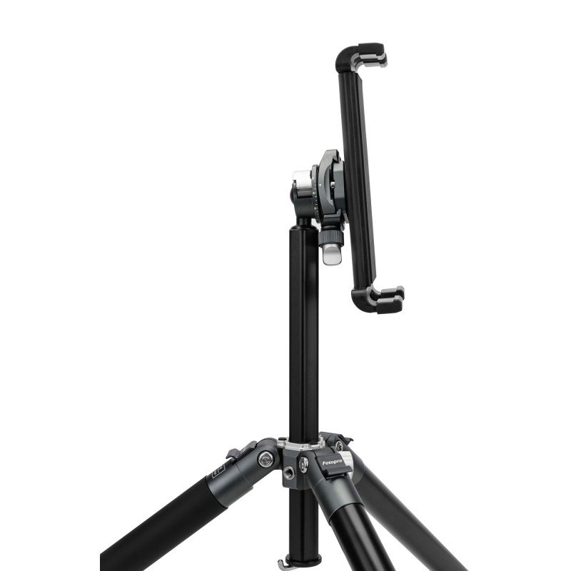 The Fotopro ID-200+ tablet mounting bracket is the perfect way to extend your workstation. Just connect it to a tripod, head or folding arm, and your handheld screen will always be within your sight. The mount is compatible with tablets from 7 to 10 inches. It features non-slip facings that will provide optimal grip and adequate protection for the case of the mobile device you are using. A female 1/4″ thread is located on the back of the mount. Main product features universal tablet holder Made of high quality plastic bracket spacing from 16.4 to 24.2 cm compatible with tablets from 7 to 10 inches automatic clamping mechanism that adjusts to the size of the tablet anti-skid facings for better grip and protection of the tablet case Female 1/4″ thread compatible with many tripods, heads and mounting brackets an excellent choice when you want to keep your digital notes handy while recording your videos or podcasts convenient way to expand your workstation or multimedia entertainment center an ideal choice for musicians who rely on notes or song lyrics displayed on the tablet’s screen Wide compatibility The Fotopro ID-200+ mounting bracket is compatible with tablets from 7 to 10 inches. The width of the device you install in it can range from 16.4 to 24.2 cm. All you have to do is slide out the movable rail and place the tablet in the holder. The clamp will automatically adjust to the size of the tablet, providing it with adequate stability when attached to a tripod, head or mounting bracket equipped with a 1/4″ thread. Multiple applications With a 1/4″ thread, you can combine the Fotopro ID-200+ tablet mounting bracket with a wide variety of mounts to expand your workstation. Tripods, heads, as well as articulated or flexible arms will ensure that your screen with videos, photos, presentations, texts or notes will always be where you need it. Specification model: Fotopro ID-200+ compatibility: tablets from 7″ to 10″ grip spacing: 164 – 242 mm dimensions: 183 x 95 x 35 mm weight: 106 g Set contents Photopro ID-200+ tablet mounting bracket