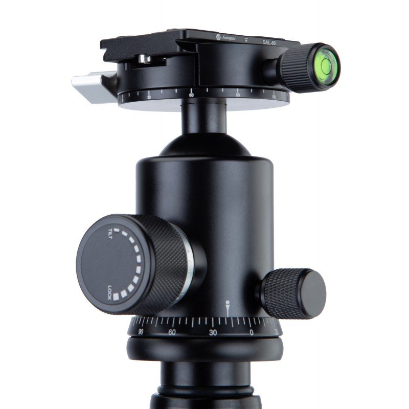 The Fotopro X-65C with FPH-62R ball head is the ideal choice for those who want compact dimensions in the transport position and a high maximum working height (as much as 208.4 cm!). The tripod has a three-stage leg tilt system, which consists of 5 sections. They are locked in place using a convenient swivel clamp system. The removable central column in combination with the unscrewable leg will allow you to create a telescopic monopod in seconds. The tripod is equipped with a spirit level, hook and rubber non-slip feet, under which adhesive spikes are concealed. The set also comes with a sturdy carry bag equipped with a special module allowing it to be extended. The manufacturer also provides a 6-year warranty. Main product features photographic tripod with professional ball head made of high quality aluminium as much as 208.4 cm maximum working height 51 cm length in transport position 5 leg sections extendable by means of a swivel clamp system maximum load capacity of 5 kg three-stage leg tilt system level for precise positioning of tripod legs reversible central column for closer-to-the-ground photography included professional ball head Fotopro FPH-62R head equipped with independent pan and tilt controls Arca-Swiss standard quick-mount plate protected by a silicone lining double ball locking system to prevent any movement once locked head equipped with 2 spirit levels 2 360º pivot points on the head 360º scale for precision when taking panoramic shots quick-mount plate fitted with 1/4 “male thread two-sided tripod top screw allowing the installation of heads with 3/8″ and 1/4″ screw leg protected with silicone lining when combined with the central column and head allows you to quickly and conveniently create a monopod Extractable hook to load the tripod rubber foot pads for good grip on flat ground possibility to remove the rubber feet, under which the spikes are hidden, which make it easier to work on uneven ground additional set of rubber feet pads included solid carry bag, which you can enlarge with the zipped module Even higher! The Fotopro X-65C will be the perfect choice if you are looking for a handy tripod that offers an unbeatable maximum working height. In the transport position, it measures just 51 centimetres. When all the legs are fully extended, you get a height of 208.4 cm! The tripod has a three-stage leg tilt mechanism. Each leg consists of 5 sections, locked in place with a convenient swivel clamp system. The tripod is great for outdoor use as well as for home use. In-studio and in-the-field The legs of the Fotopro X-65C tripod are equipped with rubber, non-slip pads. Thanks to these, no panels or parquet floors will be scratched and the design will give your frames optimum stability. If you are working outdoors, simply remove the rubber feet and use the adhesive spikes. This will be ideal when the tripod is standing on compacted earth, ice, mud or sand. Professional ball head The Fotopro X-65C tripod is equipped with the FPH-62R ball head with Arca Swiss standard quick-mount plate. It offers 2 spirit levels, making it easy to position the camera in the optimum position. The FPH-62Q head has two precise and smoothly operating knobs. One is used to lock and adjust the clamping force of the ball, while the other locks the movement of the rotating head base. There is also a 360º graduation scale, which will help take care of the necessary precision when taking panoramic shots. Turn a tripod into a monopod When filming and taking photos, there are often times when there is neither time nor space to set up a tripod. This is when a monopod comes to the rescue. Simply unscrew the leg of the Fotopro X-65C tripod, which is finished with a pleasant-to-touch lining. Connect it to the central column and discover completely new ways of framing with the telescopic handle. Upside down The Fotopro X-65C tripod with FPH-62R ball head is a versatile tool for photographers who work on the go, in the studio or at home. The option to invert the central column will allow you to shoot closer to the ground, which is sure to be appreciated by product photography and nature macro enthusiasts. Comfort-and-convenience-of-working The tripod has a three-stage tilt mechanism for the legs, which are made up of 5 sections, locked in place with a convenient swivel clamp system. You can adjust its height to the unevenness of the terrain in seconds. If required, you will hang an additional load on the special extendable hook. The double-sided mounting element, which allows you to install a head on the tripod, supports 3/8″ and 1/4” threads. This makes the whole design more versatile and you can connect even more accessories to it. Safe transport Included with the Fotopro X-65C tripod you will receive a zipped transport bag. It is made of durable material padded with foam to help protect your valuable equipment. Inside, there is also a pocket for small accessories. If you are taking another tripod with you or want more space for accessories, simply unzip the zipper on the side. The folding compartment will provide almost 14 cm of additional space. 6 year warranty Thoughtful design, top quality materials and precision workmanship ensure that the product will serve you for years. All Fotopro tripods come with a six-year warranty! Fotopro X-65C with ball head FPH-62R is an excellent choice for professionals and enthusiasts who expect reliability and adequate comfort from their equipment. Join the #photopro family As you embark on an amazing journey full of unique frames and shots, don’t forget to bring a good tripod with you. Share your great photos and videos with us by tagging us on Facebook and Instagram using the hashtag #fotopropolska. See you on the trail! Specification model: Fotopro X-65C tripod with FPH-62R ball head colour: grey number of leg sections: 5 material: carbon fibre minimum tripod working height: 215 mm maximum tripod working height: 2084 mm height in transport position: