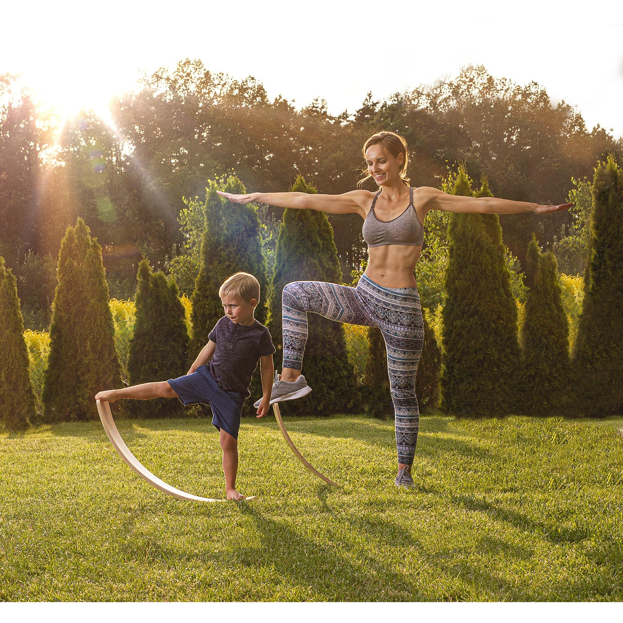 Humanas Board One balancing board is great fun for children and parents. You can swing, swing, sway and train your sense of balance on it. It supports the development of large motor skills in children, improves their mood, develops intellectually and positively influences their emotions. It is a great starting point for creative play. It will surely gain popularity with people interested in teaching the Montessori and Waldorf methods.
