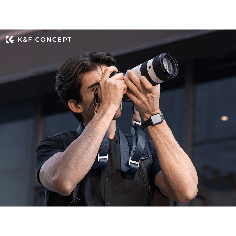 The K&F Concept Camera Belt Alpha Strap is a reliable companion for photographic expeditions. Made of strong nylon, reinforced with natural leather and equipped with Duraflex buckles, it can easily carry up to 36 kilograms. Its wide compatibility makes it fit most cameras on the market (including Nikon, Canon, Fuji, Sony or Olympus). With an adjustable length from 100 to 160 cm, it will provide optimal stability and comfort when worn in three different ways – as a shoulder strap, neck strap or “cross-body”. An innovative warning system allows you to monitor the wear of the material in real time. Three layers of cord marked with different colors allow you to easily assess the technical condition of the attachments. With this strap your camera will always be safe! Main product features professional camera strap in dark gray construction inspired by car seat belts 3 ways to wear it – shoulder strap, neck strap or worn diagonally (“cross-body”) made of strong nylon reinforced natural waxed leather equipped with sturdy Stealth buckles from the renowned Duraflex company 3.2 cm wide and length adjustable from 100 – 160 cm innovative warning system to monitor the wear of the fasteners compatible with most camera models on the market A choice for years to come The K&F Concept Alpha Camera Strap was created for photographers and video makers who value the durability of their equipment. It is distinguished not only by its elegant design, but also by the top quality of its materials. The inspiration for the K&F Concept strap came from…. car seat belts. Guarding your camera here are sturdy Stealth buckles from the renowned Duraflex company, high-quality nylon and natural waxed leather, which adds a unique character to the whole. The maximum load capacity of the strap is up to 36 kilograms! Wide compatibility The K&F Concept camera strap is designed to fit almost all cameras on the market, regardless of brand or model. Nikon, Canon, Fuji, Sony or Olympus are just some of the companies whose DSLRs or mirrorless cameras are compatible with this accessory. Thanks to its universal design and adjustable length, ranging from 100 to 160 cm, the strap will always provide you with optimal stability and wearing comfort. 3 ways to wear The Alpha Strap is not only compatible with hundreds of different cameras, but also extremely versatile in use. Thanks to its ergonomic design, it can be used in three different ways – as a shoulder strap, around the neck or worn on the bias (“cross-body”). Whether you’re hiking in the mountains, taking commercial assignments at events, shooting street photography or working in a studio, the K&F Concept camera strap will ensure optimal working comfort and wearing convenience in any situation. Wear control system Even the best straps will wear out at some point. This is especially true of the cords that hook onto the attachment located on the camera body. For the sake of your device’s safety, it’s a good idea to know when this component should be replaced. That’s why the K&F Concept camera strap is equipped with an innovative warning system. The 3 layers of the cord are marked with different colors. This way you can easily monitor the degree of wear of the material. Knowing the condition of the strap will better ensure the safety of your camera! Specification model: K&F Concept Alpha Strap camera strap color: dark gray max load capacity: 36 kg length: 100 – 160 cm width: 3.2 cm weight: 130 g Set contents K&F Concept Alpha Strap camera strap – dark gray
