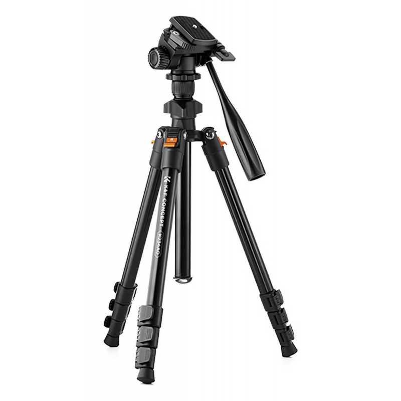 The K&F Concept K-Series K234A0 video tripod not only provides excellent stability and smooth movement during filming and photography, but is also perfect for travel. It weighs just 1.26 kg and measures 45 cm in the transport position. You’ll also find a zippered transport bag included. The film head allows you to pan 360º and perform backward and forward tilt. There’s also an ergonomic handle to help you guide your camera or camcorder smoothly. The use of a 1/4″ threaded quick-mount plate ensures wide compatibility with hundreds of devices. You will also find a smartphone holder included. Main Product Features lightweight tripod equipped with film head a good choice for people who are looking for a tripod for film and photography ideal for use with DSLR cameras, mirrorless cameras, smartphones and camcorders 360º panorama possibility to perform backward and forward tilt ergonomic handle for control over camera or camcorder movements system for changing camera orientation from horizontal to vertical offers a maximum working height of 177 cm only 45 cm long in the transport position 4 sections of legs extendable with a clamp system 2 center column sections quick-mount plate with 1/4 “thread phone holder included Ideal choice for video makers The K&F Concept K-Series K234A0 video tripod provides optimum smoothness and precision movements during filming. The head used offers two work axes – tilt and pan – with independent position locks. They allow you to eliminate accidental movements, ensuring your stability in every shot. Thanks to a special handle, you can precisely control the operation of your camera or camcorder. In addition, the swiveling module allows you to instantly adjust your camera to portrait orientation for even more flexibility. Versatile and compact The K&F Concept K234A0 is an ideal choice for photographers, travelers and vloggers. Thanks to its lightweight materials, it weighs just 1.26 kg. When folded into its transport position, it measures 45 cm. So you can easily cinch it to your backpack or pack it in your travel suitcase. When unfolded, you can enjoy as much as 177 cm of maximum working height. Smartphone mount Thanks to the 1/4” threaded quick-mount plate, you can easily install most popular compact cameras, DSLR cameras, projectors, telescopes or other compatible devices on the tripod. However, that’s not all. If you want to take photos or film with your smartphone, the included bracket comes to the rescue. You can easily adjust the width of the clamp to your phone, and the rubber lining effectively protects the edges of the device, while ensuring perfect frame stability. Fast unfolding When you choose the K&F Concept K-Series K234A0 video tripod, you’re assured that getting ready for camera work will only take a few seconds. Thanks to the use of 4 sections of legs with a maximum diameter of 22 mm and sturdy clamps, adjusting the device to your needs is simple, fast and convenient. The two-section center column is an added convenience that allows you to precisely position your camera in a convenient position. Convenient transport Included with the tripod you will also find a zippered transport bag. It’s a guarantee of safe transportation and optimal comfort when traveling with your photo-video equipment. The bag is made of durable material. So you can easily carry your equipment, whether strapped to a backpack or placed in a suitcase with other photographic accessories. Specification model: K&F Concept K-Series K234A0 video tripod number of leg sections: 4 max. leg diameter: 2.3 cm maximum working height: 177 cm height in transport position: 45 cm max load capacity: 3 kg weight: 1.26 kg Set contents K&F Concept K-Series K234A0 video tripod phone holder transport bag allen wrench
