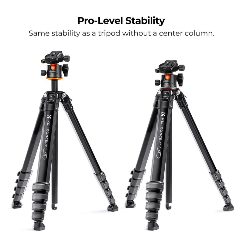 The K&F Concept M1 is the ideal tool for discerning photographers, vloggers and travellers looking for a versatile and compact tripod. Thanks to its lightweight and robust aluminium construction, it is perfect for use outside the home and studio. Its compact dimensions when folded (only 50 cm long) and weight of 1.8 kg make it easy to take with you on the go. The BH-36L head offers up to 15 kg of lifting capacity. This means you can safely combine the tripod with professional photo-video equipment. In the set you will find a sturdy carrying bag with shoulder strap and an allen key. Main product features compact tripod made of aluminium 50 cm length when folded only 1.8 kg in weight lightly 1.8 kg in weight – ideal for long-distance travel and outdoor sessions professional BH-36L head equipped with a 28 mm diameter ball compatible with Arca-Swiss system excellent smooth movement and easy mounting perfect smoothness of movement and easy mounting of a camera or camcorder lifting capacity of up to 15 kg – stable support even for heavier photographic equipment quick leg locking system – ‘lever lock’ latches quick adjustment of tripod height quick and easy tripod height adjustment to suit your current needs 5-section legs allowing height adjustment from 46 cm to 178 cm quick release central column possibility to quickly remove the central column after rotating the central column by 180º you can film or shoot on the ground hook for additional tripod weight leg locking mechanism for unparalleled stability even without central column Wide legs finished with non-slip material Wide legs with non-slip material Wide legs with non-slip finish Compact design The K&F Concept M1 tripod with BH-36L ball head is designed for photographers who travel frequently and need a lightweight, compact tripod that won’t add unnecessary weight to their luggage. It measures just 50cm when folded and weighs just 1.8kg. This is ideal for vloggers who can’t sit still for long. The tripod can be easily attached to a camera backpack. It will be an ideal companion for long trips and outdoor sessions. Unparalleled professional-level stability The K&F Concept M1 with BH-36L ball head guarantees professional-level stability. All thanks to the ergonomic design of the legs. The tripod provides extremely secure positioning, which is crucial when working with heavier cameras or lenses. With a load capacity of up to 15 kg, you can freely use advanced photographic equipment without worrying about losing stability. Sturdy construction The K&F Concept M1 tripod has been made from high quality aluminium for durability and resistance to harsh weather conditions. Its construction has been designed to withstand the challenges of heavy use, whether it’s in rugged terrain or long studio sessions. Whether you’re shooting in the rain or the desert, this tripod will provide the reliability that professionals expect. Convenient leg locking system The ‘lever lock’ quick leg lock system used in the tripod allows for instant unfolding and height adjustment to suit current needs. The 5-section legs allow height adjustment from 46 cm up to an impressive 178 cm, giving you the flexibility to work in a variety of conditions. Ideal for macro photography The K&F Concept M1 tripod with BH-36L ball head is perfect for macro photography. All thanks to the option of quick removal of the central column, which simply needs to be inverted by 180º so that your camera is right on the ground. This is the perfect tool for creatives who want to capture the finest details of small subjects. Additional accessories The K&F Concept M1 tripod is not only a stable support for your camera, but also an unparalleled assistant to ‘hold’ additional gear. The female 1/4’ thread will allow you to connect a preview monitor, microphone, LED lamp or smartphone holder to the tripod. The tripod will therefore be an invaluable support for filmmakers and vloggers. Compatibility with the Arca-Swiss system will further facilitate quick camera mounting and dismounting, saving time and allowing you to focus on your creative work. BH-36L ball head Included with the K&F Concept M1 tripod you will find the advanced BH-36L ball head, made of durable aluminium, which offers a load capacity of up to 15 kg. The 36mm diameter ball guarantees smooth movement, which is invaluable when creating panoramic shots and working with heavier equipment. There is also a precision graduation and bubble level on board. Specification model: K&F Concept M1 with ball head BH-36L material: aluminium head type: ball head ball diameter: 36 mm quick-mount plate: Arca-Swiss leg lock type: ‘lever lock” number of leg sections: 4 maximum height: 178 cm minimum height: 46 cm height when folded: 50 cm maximum load: 15 kg weight: 1.8 kg Set contents K&F Concept M1 tripod with BH-36L ball head transport bag shoulder strap Allen wrench