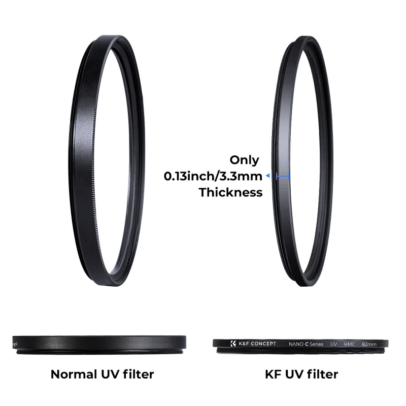 The K&F Concept Classic HMC UV filter is an indispensable tool in every photographer’s essentials. It will not only effectively protect your equipment from dust, pollution and mechanical damage, but also help to improve the quality of your photos. Thanks to the HMC (Hard Multi-Coated) multilayer coating and the use of Japanese optical glass, the filter guarantees to reduce reflections and glare, improving the contrast and clarity of photographs. The ultra-thin 3.3mm thick frame prevents the occurrence of vignetting. You’ll also find a plastic case that will provide adequate protection for the filter in transport. Main Product Features UV filter compatible with 52mm thread protects the lens from dust, dirt and fingerprints additional protection against mechanical damage to the front lens reduces UV light effects, improving photo quality ideal for landscape photography – eliminates atmospheric haze made of high quality Japanese optical glass 18-layer HMC (Hard Multi-Coated) ultrathin bezel (3.3mm thick) prevents vignetting on wide-angle lenses protective case included Perfect lens protection Your lens deserves the best protection. The K&F Concept Classic HMC UV filter will not only effectively protect it from fingerprints, dust and scratches. It will also be an additional barrier against mechanical damage, just like a film applied to your smartphone screen. Protection against UV radiation UV radiation, present in the environment even in seemingly ideal weather conditions, can cause undesirable effects such as haze, decreased contrast or blurry photos. The K&F Concept Classic HMC UV filter acts as an invisible barrier through which light passes. It eliminates the effect of UV rays on your photos, positively affecting image clarity. HMC Coating The abbreviation “HMC” in the case of lens filters stands for “Hard Multi-Coated”, or multi-layer coating. Its application is designed to improve image quality by reducing reflections, glare and flare. The use of multiple layers placed on both sides of the filter helps reduce atmospheric haze, positively affecting the contrast and clarity of your photographs. By choosing the K&F Concept Classic HMC UV filter you will get even better quality photos, reducing distortion and imperfections. Japanese quality At the heart of the K&F Concept Classic HMC UV filter is Japanese glass, known worldwide for its precision manufacturing and high quality. It ensures long-lasting use and excellent light transmission without compromise. The multi-layer coating offered by the filter will effectively get rid of unwanted light effects from your photos, guaranteeing clean and clear frames. Ultra-thin profile The super-thin frame of the K&F Concept Classic HMC UV filter is only 3.3mm thick. As a result, you don’t have to worry about the vignetting effect, even when you use long telephoto lenses that offer large focal lengths. Your frames will remain clear and crisp, maintaining full clarity – both for close-ups and very wide shots. Compatibility Lenses with 52mm filter mount thread Specification model: K&F Concept Classic HMC UV filter – 52 mm filter type: UV coating used: Hard Multi-Coated (18 layers) thickness: 3.3 mm diameter: 52 mm Set contents K&F Concept Classic HMC UV filter – 52 mm protective case