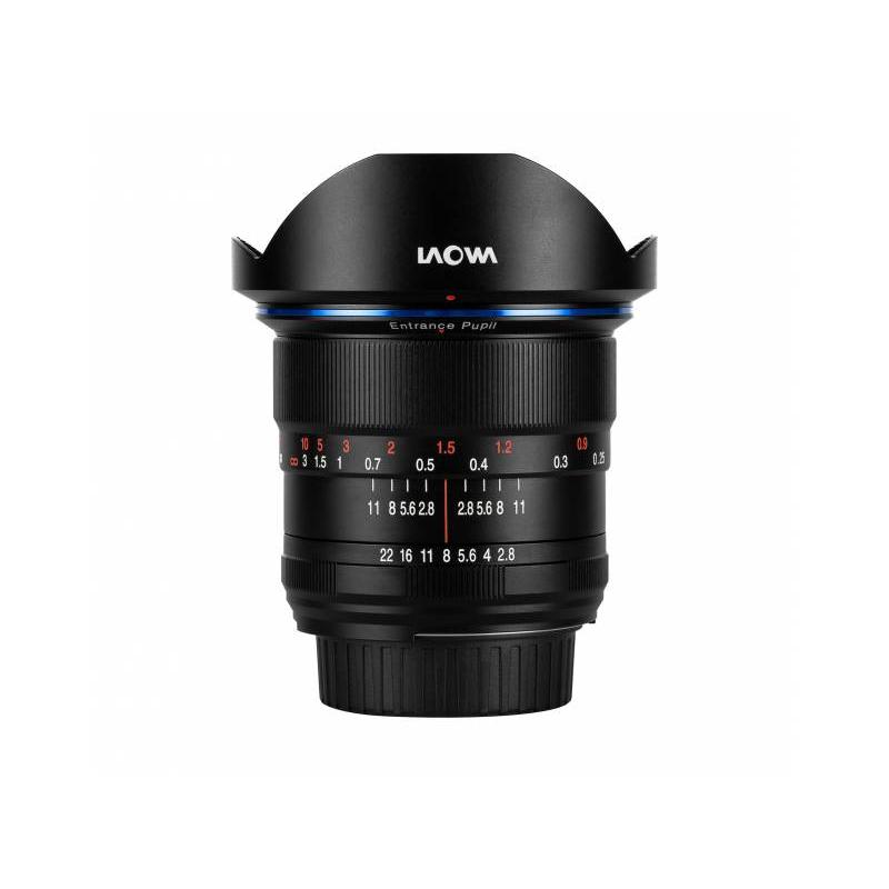 The Laowa 12mm f/2.8 Zero-D is the world’s widest lens with f/2.8 brightness and near-zero image distortion. Its extremely wide angle of view (122°) and high brightness make the lens ideal for a wide range of applications from landscape photography to travel photography to astrophotography. The lens’ low distortion and accurate line reproduction will especially appeal to photographers specialising in architecture and interior photography. The optical construction of the lens consists of sixteen elements arranged in ten groups. Three low dispersion lenses and two aspherical lenses provide edge-to-edge imaging performance throughout the frame, even at wide open apertures. The front lens is treated with “Frog Eye Coating” to protect it from dust and dirt, and a built-in mount allows attachment of an optional filter adapter. The smallest dimensions and lowest weight, among similar designs, make the Laowa 12mm f/2.8 Zero-D the ideal lens for ‘everyday’ use. Specification model: D-Dreamer 12mm f/2.8 Zero-D mount: Canon EF focal length: 12 mm angle of view: 121.96° minimum aperture: f/2.8 maximum aperture: f/22 number of aperture blades: 7 image coverage: full frame (35mm) optical construction: 16 elements in 10 groups minimum focusing distance: 18 cm focusing: manual dimensions: 8.3 x ⌀7.5 cm weight: 609 g colour: black filter attachment: optional Laowa 100 mm filter holder Kit contents Venus Optics Laowa D-Dreamer 12 mm f/2.8 Zero-D lens for Canon EF sun hood decal cap for front of lens decal for the back of the lens