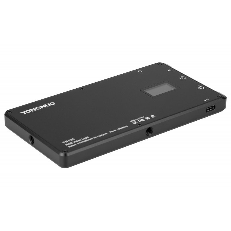 Yongnuo YN135 – RGB, WB (3200 K – 5600 K) is a pocket-sized LED flash that resembles a smartphone. It is perfect for recording vlogs, live broadcasts, as well as product, street and macro photography. Despite its small size, the lamp provides impressive light intensity, which can reach up to 1180 lux. The use of three types of diodes allows continuous adjustment of colour temperature and definition of colours from the RGB palette (including shades, saturation and intensity of light). There are also 14 special effects, realistically imitating, among others, the light of a candle, a police car cock or a bonfire! The built-in rechargeable battery will provide up to 3 hours of operation, and thanks to Quick Charge technology you will charge it in just 2 hours! Main product features A pocket LED lamp with versatile capabilities will be great for shooting video footage and live broadcasts an excellent source of fill light in photography Adjustable colour temperature from 3200 K to 56000 K Adjustable colour temperature from 3200 K to 56000 K Adjustable colour temperature from 3200 K to 56000 K Capable of changing the colour of the light in RGB Adjustment of colours in HSI mode (hue, saturation, intensity) High CRI of 95+ for accurate colour rendering Equipped with a modern, state-of-the-art LED lamp equipped with a state-of-the-art processor preventing the occurrence of flicker effect high CRI index 95+ ensuring faithfulness to colour rendering high CRI index housing made of lightweight aluminium for optimum heat dissipation 14 predefined lighting settings 14 pre-defined special effects simulating natural and artificial light sources two separate subgroups for CCT (colour temperature) and HSI modes for faster switching between settings up to 160 minutes run time up to 160 minutes of operation per charge at full LED brightness bright OLED screen for convenient control of settings built-in rechargeable battery Built-in 5,000 mAh battery equipped with a state-of-the-art security system USB-C port supporting Quick Charge technology, which allows you to charge your device in 2 hours 2 1/4″ threads for convenient tripod mounting a memorable memory for the battery Memory option for last mode a “cold shoe” adapter to extend mounting options Small size and solid construction The Yongnuo YN135 LED flash takes up almost exactly as much space as a smartphone with a 6-inch screen. This means you can easily fit it in your photography backpack, bag or trouser pocket. It’s worth having with you at all times because you never know when an extra light source could completely change the game when it comes to your photos or videos! Importantly, the lamp housing is made of durable aluminium, which protects your equipment while ensuring optimal heat dissipation. The magic of colours in the RGB system Among the 135 LEDs making up the panel of the Yongnuo YN135 lamp, 45 are RGB diodes allowing to change the colour of light. It is these that will allow you to experiment endlessly, adding a unique character to your shots and frames. Ergonomic knobs allow you to conveniently adjust the colour, saturation and power of the light. This gives you almost unlimited options! You don’t have to use filters offered by apps to play with colours in your photos and videos. With a small lamp, you can get exceptional effects right from the moment you press the shutter! Brilliant colour rendering The high CRI factor guarantees very good colour reproduction. It is defined by the value in the range from 0 to 100. It is nothing but an indicator of the similarity of artificial light to the spectrum of natural light (emitted by the sun). In the case of Yongnuo YN135 LED lamp we are dealing with CRI exceeding 95, so the illuminated objects look natural and the light itself is faithful to the original colours and properly reflects the depth of tone. Color temperature adjustment The possibility to adjust the colour temperature is provided by 45 diodes 3200 K and 45 diodes 6500 K. This range allows you to adjust the panel light to the conditions found. This applies to both incandescent and daylight. Working with Yongnuo YN135 lamp you can also conveniently reduce or increase the light intensity. With a device that fits in your pocket, you’ll be able to open up a whole new realm of possibilities on your film or photography set! Variety of uses There is a 1/4″ thread on both the long and short sides of the lamp. This ensures even more convenient work on films and photos. The threads allow you to install the lamp vertically or horizontally on a tripod, cage or other device. A special cold shoe adapter is also included. You can stably install it in a rail mount, which you can find on almost any camera. The magic of Hollywood The Yongnuo YN135 LED flash offers 14 predefined special modes to add unique lighting effects to your movies, based on varying colour or flash sequences. You need just seconds to simulate a campfire, party lights, an ambulance, a police car or a flickering TV screen. The Yongnuo YN135 LED lamp is a great way to experience the magic of cinema and use special effects in your own productions. Long runtime on a single charge With a built-in 5000 mAh battery, you can forget about buying batteries once and for all. You can recharge the lamp at any time using a power bank or charger. The included USB-C / USB-A cable will help you do this. By setting the highest light output, you can enjoy up to 160 minutes of uninterrupted operation. The lamp also supports Quick Charge technology. This means that with the right charger, it can take as little as 2 hours for the device to replenish power. Specification model: Yongnuo YN135 – RGB, WB (3200 K – 5600 K) max. output power: 12 W max. number of LEDs: 135 (45 x 3200 K / 45 x 6500 K / 45 x RGB) colour temperature of the light: 3200 K – 5600 K luminous intensity: 1180 lux at a distance of 0.5 m (at 5600 K colour temperature) luminous intensity: 1180 lux at a distance of 0.