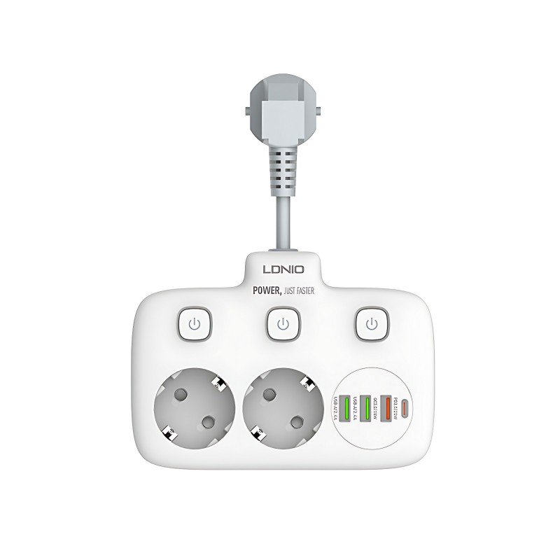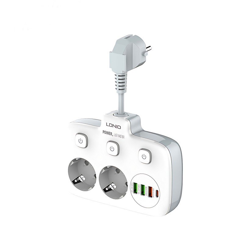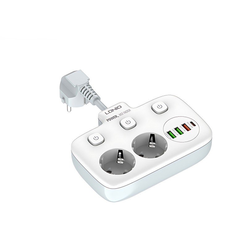 The Ldnio SE2435 is a modern power strip and USB charger in one, designed as an extension to a single electrical outlet. With 2 AC type F mains sockets and four USB ports, you will be able to power all your everyday electrical devices and charge the batteries in your smartphone, tablet or smartwatch.