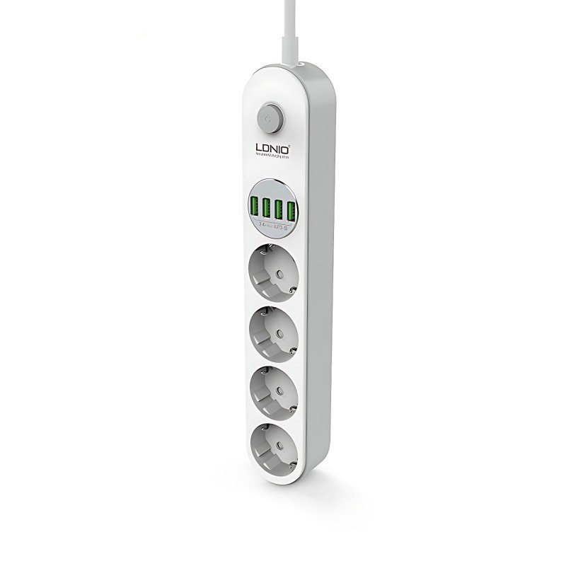 The Ldnio SE4432 is a modern power strip and USB charger in one. With four F-type AC mains sockets and four USB ports, you can power all your everyday electrical devices and charge the batteries in your smartphone, tablet or smartwatch.