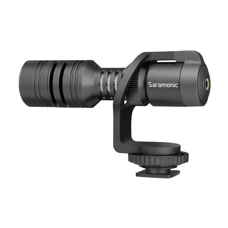 The Saramonic Vmic Mini is a compact directional microphone giving excellent sound quality for audio and video recording. Thanks to the included TRS/TRRS and TRS/TRS cables, the unit is compatible with most camera, camcorder and smartphone models. The microphone’s cardioid directional capsule reduces the scattering of unwanted ambient sounds, focusing the sound right in front of the camera. Its versatile transducer ensures that the sound of your recording, whether outdoors or in an enclosed room, will be exceptional. The aluminium and robust housing keeps the microphone safe and protects it from damage on the move. Specifications Microphone type: condenser directional Frequency response: 75 Hz – 20 kHz Sensitivity: – 35+/- 3 dB ?(0 dB = 1V/Pa, at 1 kHz Maximum input SPL: f= 1 kHz, THD Output impedance: 200 ohms Signal-to-noise ratio: 75 dB SPL Dimensions: 62 x 117 x 19 mm Weight: 69 g Compatibility Microphone is compatible with most cameras, camcorders and smartphones Kit includes Vmic Mini microphone wind shield mini Jack 3.5 mm TRRS cable/ mini Jck 3.5 mm TRS cable mini Jack 3.5 mm TRS cable/ mini Jck 3.5 mm TRS cable