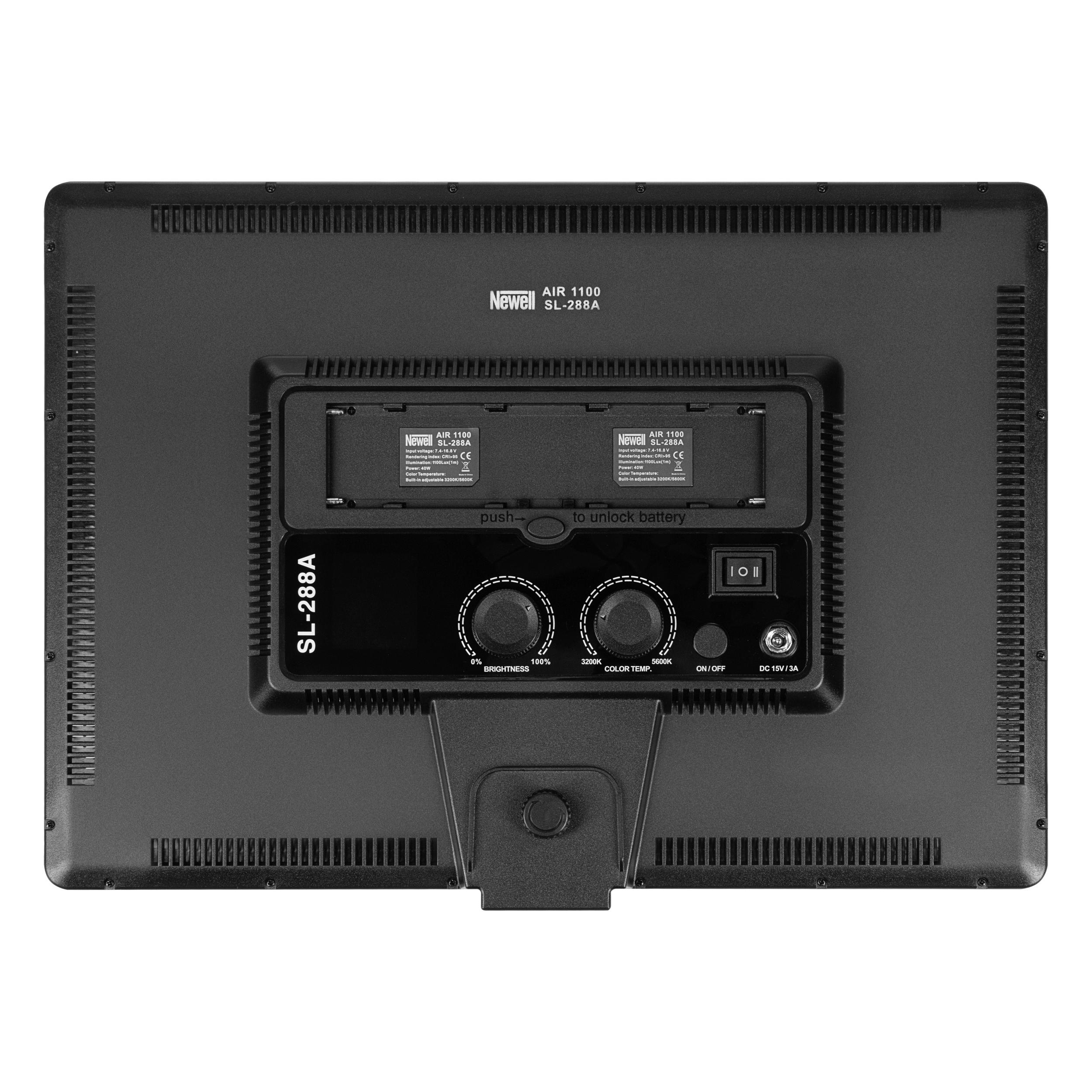 The Newell Air 1100 LED lamp is an excellent device for photographers and filmmakers who need an additional light source for various types of projects. Built-in color and power temperature control makes it easier to control the proper lighting, and the built-in diffuser brings the soft light desired by the creators. Advanced features Newell Air 1100 has a built-in diffuser, thanks to which we obtain a pleasant, soft light, without the need for additional accessories. The power of light and color temperature can be controlled smoothly by knobs and the control of parameters is done by the built-in display. Well thought out design The construction of the lamp allows you to mount it using the attached bracket on a light stand. The design of the adapter also allows you to adjust the angle of the panel plane. In addition, there is a ¼ inch socket at the bottom of the panel that allows mounting on a tripod head. Power options The Newell Air 1100 can be powered in two ways. The first is the use of popular NP-F batteries available in the Newell offer. The indicator on the display helps to check the state of charge of the cells. The second solution is the DC 15 V power supply, which is included in the set. Rechargeable batteries, however, should be purchased separately. Many years of experience The Newell brand has been operating on the market for many years and has a long list of satisfied clients both among professionals and photography enthusiasts. Specification • CRI:> 95 • lux: 1100 (per 1 m) • maximum power: 40 W • color temperature: 3200/5600 K • power supply: NP-F battery (not included) or DC 15 V power supply (included) • mounting: on a light stand using a handle (included), a ¼ inch thread socket • type of cooling: natural ventilation • dimensions (mm): 376 x 266 x 25 mm • weight: 1170 g (without batteries) Kit contents • Newell Air 1100 LED lamp • user manual • mounting adapter for a lighting tripod • 15 V DC power supply