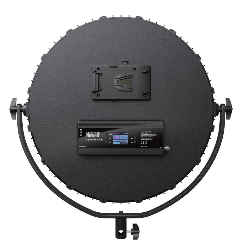 The Newell Air Artha XL RGB RC APP is a modern LED lamp that will open up new possibilities for you to experiment with light. The round panel with integrated diffuser offers a power output of 70 watts, which translates into 2500 lumens of maximum light output. Adjustable colour temperature from 2500 to 8500 K and the HSI colour palette provide enormous freedom to adapt the lighting to different situations. A free mobile app and remote control allow you to remotely control the unit from up to 15 m away. The Air Artha XL RGB also offers the possibility to work with other lamps operating in the same system. There are also 49 special effects on board and 2 power options (power supply or V-Mount battery). A zipped carrying case is included. Main product features round LED panel with integrated diffuser 70 W of maximum power Adjustable colour temperature from 2500 to 8500 K 360 colours available within the HSI palette max. luminous flux of 2500 lumens 2 ways to power the lamp: power supply (included) or V-mount battery (must be purchased separately) equipped with 160 5050 RGB LEDs (0.5 W) free app (Google Play / App Store) for remote control remote control included (2.4 Ghz) a remote control range of 15 m control panel equipped with a backlit colour LCD screen (1.77″) possibility to control multiple lamps within 40 channels and 3 groups possibility to adjust light brightness from 1% to 100% adjustable colour saturation from 0% to 100% diffuser for natural lighting and reduction of unwanted shadows universal tripod mount conveniently adjustable lamp angle included zippered carry bag Magic of colours The Newell Air Artha XL LED lamp in the RGB RC APP variant offers a whole new way to experiment with light. The lamp offers 360 different colours available within the HSI space. For each colour you can also set a specific brightness and saturation from 0 to 100. The multitude of setting combinations is an indispensable support for transforming artistic visions into impressive photos and videos. Adjustable power and colour temperature The Newell Air Artha XL RGB RC APP LED lamp will give you a huge amount of creative freedom. You will set its angle thanks to a movable disc locked by strong screws. The unit also has a built-in diffuser. You can easily adjust the colour temperature from 2500 to 8500 K. The maximum light output you will achieve with the Newell Air Artha XL RGB RC APP lamp is up to 2500 lumens. Even light dispersion The Newell Air Artha XL RGB RC APP LED lamp is equipped with a diffuser made of lightweight plastic with optimum clearance and milky colour. It allows for an even and natural illumination. It also effectively reduces unwanted shadows. Thanks to the diffuser, you no longer need to reach for an additional light modifier to ensure pleasant and soft light. Remote-control-and-mobile-app The Newell Air Artha XL RGB RC APP LED light offers a convenient to use control panel with an illuminated screen. However, that’s not all when it comes to control options. You will also find a remote control included, powered by two AAA batteries, which allows you to control the lamp from up to 15 metres away. You can also control the device via a mobile app. You can download it from Google Play or App Store completely free of charge. Two power ways With two different ways to power it, the Newell Air Artha XL RGB RC APP LED lamp will work well anywhere – in the studio, at home, or in the field. You will find a compatible DC 15 V / 5 A power supply included. The unit also features a V-Mount (V-Lock) battery socket. This allows you to enjoy wireless power wherever access to an electrical outlet is limited. V-MOUNT battery pack MUST be purchased separately. Extended light system The Newell Air Artha XL RGB RC APP LED lights are the ideal choice for those looking to create an extended lighting system. With 40 available channels that can be divided into 3 independent groups, you have full control over all the fixtures you work with. You no longer need to approach each lamp individually to adjust its parameters to suit your needs. Now you can control all your devices with a single control panel, remote control or mobile app. 49 special effects The Newell Air Artha XL RGB RC APP LED lamp offers up to 49 built-in special effects to simulate, among other things: a TV, a broken light bulb, a fire, a thunderstorm, a party, a police car or an ambulance. Most of the settings are available in several variants, differing in the speed of flash transitions and colour transitions. With special effects, you can enhance your videos without having to increase your production budget. This is the ideal choice for video creators who want to spark their creativity and produce even better footage. Convenient transport Convenient transport and safe storage of the Newell Air Artha XL RGB RC APP light is ensured by a practical, zipped travel case with a handle. Inside, there are matching compartments for the remote control, power supply and cables. In a special pocket finished with elastic band you will be able to store additional photographic or film accessories. Specification model: Newell Air Artha XL RGB RC APP max power: 70 W LEDs: 160 (5050 RGB / 0.5 W) max. luminous intensity: 1500 lux (@ 1 m) max. luminous flux: 2500 lm colour temperature of light: 2500 – 8500 K CRI: > 95 TLCI: > 95 colour gamut: 0 – 360 saturation adjustment: 0 – 100 brightness adjustment: 1 – 100 % display: LCD (1.77″) Lamp power supply: DC 15 V / 5 A power supply (included) V-Mount battery pack (sold separately) remote control power supply: 2 x AAA battery or rechargeable battery Remote control – connectivity: remote control – radio waves (2.4 GHz ) application – Bluetooth remote range: 15 m operating environment temperature: 0 – 35° C storage temperature: -10 – 50 °C dimensions: 539.2 x 22.9 x 548.3 mm weight: 3650 g Kit contents Newell Air Artha XL RGB RC APP LED lamp DC 15 V / 5 A mains adapter power cable remote contr