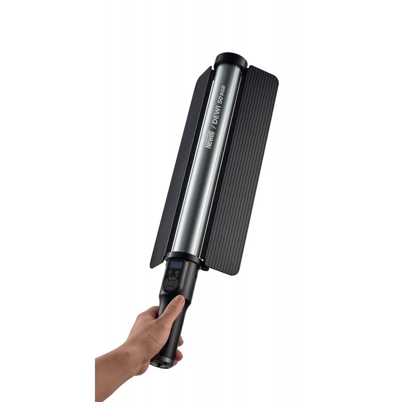The Newell RGB Dewi 50 LED lamp is a versatile tool designed for creators who need a compact and portable light source. The 60 cm long, elongated design with a one-sided panel and handle allows for comfortable ‘handheld’ work. The removable barn doors allow for even better light direction. Thanks to the wide range of colour temperature adjustment, green/magenta correction function and high CRI value (≥ 97), Dewi 50 ensures true colour reproduction and allows for the creation of various light setups. 20 special effects, support for HSI mode with full colour range and compatibility with the Linklite app provide even more possibilities. Power supply and charging via USB-C or the included power adapter allow the lamp to be used in the studio and on location. Key product features 60 cm long LED sword-shaped lamp ergonomic handle for comfortable handheld work removable barn doors included – allow you to control the direction and angle of the light high CRI value (≥ 97) guarantees natural colour reproduction possibility to change the light colour in HSI mode (0° – 360°) wide colour temperature adjustment range – from 2700 K to 10000 K 20 predefined lighting effects (12 in CCT mode and 8 in HSI mode) special effects allow you to simulate various natural and artificial light sources (including flame, TV, fireworks, disco) green/magenta correction function for precise colour matching Power supply via DC 12 V 4 A power adapter or USB-C port with PD 3.0 support and a maximum power of 15 W Can be used in the field with a power bank up to 60 m remote control range (free app for iOS/Android smartphones) 4400 mAh battery capacity for long operating time display showing brightness, saturation and colour temperature levels, as well as charge level convenient button operation robust construction and ergonomic design 40-month manufacturer’s warranty Ideal for photographers and videographers The Newell RGB Dewi 50 LED lamp, with its characteristic lightsaber shape and length of 60 cm, will open up completely new creative possibilities for you. The light panel allows for precise light direction, making it an ideal tool for painting with light, creating dynamic effects in motion or emphasising details on set. The ergonomic handle allows for comfortable ‘freehand’ work, giving you complete freedom to shape the atmosphere during photo shoots and video recordings. The Dewi 50 will be appreciated by filmmakers, photographers and internet creators who are looking for a mobile and versatile solution to create effective, creative shots. The lamp will work well in portraits, where it will allow you to shape the light, as well as in action scenes, where it will add dynamics and intensity to the shots. 50 W maximum power The maximum power mode of the Newell RGB Dewi 50 LED lamp is a real ace up the sleeve for creators who sometimes need to ‘boost’ the scene with even more powerful light. Thanks to this mode, the device can reach up to 50 W of power at a colour temperature of 4500K to 7500K. This solution is perfect for situations requiring exceptional brightness, such as photo shoots or film recordings with multiple light sources. This mode is also available for HSI, where we can take advantage of the maximum colour light output. In standard mode, power consumption is limited to 30 W, which saves energy when full lamp brightness is not needed. Precise light direction The Newell RGB Dewi 50 LED lamp is equipped with a compact removable barn door. This allows you to precisely control the direction and angle of the light, which is extremely useful when creating more complex lighting compositions. The barn doors allow you to focus the beam exactly where you need it, minimising dispersion and eliminating unwanted reflections. It’s ideal when you want to create concentrated, dramatic lighting or emphasise specific elements of the scene. The removable barn doors make the Newell Dewi 50 an even more versatile tool that can be customised to your individual needs. The magic of colours With the Newell RGB Dewi 50 LED lamp, you can define the colour of the light over the full range of 0°-360°, as well as adjust its saturation and brightness from 0% to 100%. This way, you can create exactly the atmosphere your photo or video project requires. Use the potential of Dewi 50 to create colourful compositions that will catch the eye and amaze your viewers and observers. Adjustable colour temperature The Newell Dewi 50 RGB LED lamp offers a wide range of colour temperature adjustment – from 2700 K to 10000 K. This allows you to perfectly adjust the lighting to different conditions and effects. Whether you want to create a warm, cosy atmosphere or a cold, professional light for product photos, the Dewi 50 guarantees full control. With this lamp, you can precisely reproduce natural lighting, adapting to changing daylight or creating unique, creative compositions. By adjusting the colour temperature, you can give every scene the exact character you have planned, and your photos and videos will look more professional and consistent. Remote control via smartphone With the Linklite app, the Newell RGB Dewi 50 LED lamp can be controlled from a distance of up to 60 metres. This is ideal for large photo shoots, outdoor recordings or working in dynamic environments. The smartphone app (iOS/Android) allows you to adjust brightness, colour temperature, saturation, hue and special effects in real time. This allows you to instantly change the atmosphere of the scene without interrupting your work and adjust the lighting to your creative needs on the fly. 20 special effects The Newell RGB Dewi 50 LED lamp offers 20 special effects. You can choose from 12 simulations in CCT mode, such as lightning, TV or flame. But that’s not all. In HSI mode, you will find 8 additional effects. They use colours, so you can simulate police lights, fireworks or a disco, among other things. The ability to adjust the brightness and speed of 