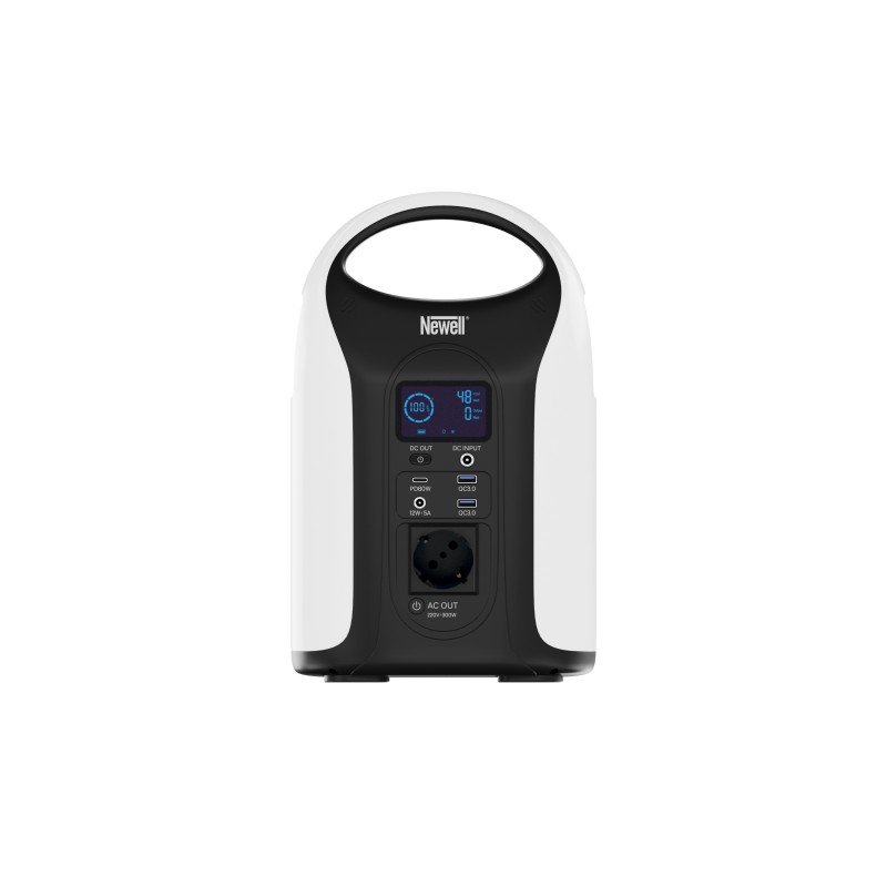 Newell Pearl AC 283 Wh PD 60 W power station The Newell Pearl is a modern power station offering 283 Wh (14.76 V) of capacity. It features a traditional AC power socket, a USB-C port with PD, 2 traditional USB ports with QC 3.0 and a DC voltage socket. Support for Power Delivery and Quick Charge technology ensures fast charging of devices. Thanks to a small LED panel, the station can also be used as a portable light source. The manufacturer has not forgotten about protection against overheating, overloading and overcharging. The Newell Pearl D300 is an ideal choice for people who travel frequently, enjoy relaxing in nature or are looking for an additional power source for their camper. Main product features portable power bank for charging and powering multiple devices ideal choice for people who frequently travel, camp, sail, fish or sleep in tents perfect for use in the home, garage, workshop or on a recreational plot equipped with a traditional AC power socket (220 – 240 V) compatible with various types of plug capable of supplying appliances with a maximum output of 300 watts (e.g. travel fridges, fans, hairdryers, monitors, lamps or kitchen appliances) equipped with a USB-C port and two USB-A ports provides convenient charging for smartphones, tablets, laptops, drones, cameras, e-book readers, camcorders, wireless headphones, watches, torches, electronic cigarettes and hundreds of other devices equipped with a DC voltage socket (12 V – 5 A) enables use of all ports simultaneously (max. load is 300 W) illuminated LED display indicating the level of available energy, charging and discharging power and the ports currently in use small LED panel allowing the station to be used as a light source quiet operation of the fan, which starts automatically when needed grip for easy carrying protection against overheating, overloading and overcharging modern design and ergonomic construction The perfect travel companion The Newell Pearl charging station is more than just a simple power bank. The device is equipped not only with USB-C and USB-A ports, but also with a traditional AC power socket. Amongst other things, you can successfully connect your laptop, hairdryer or travel fridge to it. Car, camper, campsite, music festival or mountain trail – in each of these places you will be able to use hundreds of devices that accompany you every day. As many as 5 available outlets You can connect up to 5 different devices to the Newell Pearl charging station. Smartphones, tablets, e-book readers, wireless headphones, electronic cigarettes or LED lights – up to 300 watts of rated power is available to you! On the casing of the power station you will find: 1 AC power socket 1 USB-C 60 W port (Power Delivery 3.0) 2 USB-A Quick Charge 3.0 ports 1 DC power port (12 V – 5 A) Charging parameters control The Newell Pearl charging station features an easy-to-read, backlit LED screen. With it, one glance is all it takes to see which sockets are currently in use, whether the fan is active and at what power your devices are being charged or discharged. There is also a large energy level indicator for the station itself. Safety and security The advanced technological solutions used in the Newell Pearl model ensure safety during daily use. The manufacturer has taken care of appropriate innovations, guaranteeing protection against overheating, overloading and overcharging the device. The intelligent protection system also regulates the charging process to suit the devices to be connected, even when you are using all available ports! 3 ways to charge Included with the Newell Pearl charging station, you will find a compatible charger with DC cable, allowing you to quickly and conveniently top up your device. However, that’s not all. As befits a versatile travel companion, the Pearl also offers alternative charging options. If you have the right cables, you can connect the station to your car’s cigarette lighter or solar panel. Additionally, you can charge the station via the USC-C socket using a charger with Power Delivery technology. Portable light source On the casing of the Newell Pearl charging station you will find a circular LED panel that turns the versatile power bank into a portable light source. The button located on the front will allow you to quickly turn the light on or off. Detailed in every detail The modern design of the Newell Pearl charging station goes hand in hand with ergonomics and functionality. Each port has been appropriately signed. The icing on the cake is the comfortable handle, which will make it easy to transport your device. Specification Model: Newell Pearl D300 DC input: 48 W, 12 V – 4 A USB-C PD input 60 W capacity: 283 Wh (14.76 V, 19.2 Ah) Outputs: 1 x USB-C: 2 x USB-A: 5 V – 3 A, 9 V – 2 A, 12 V – 1.5 A (support for Quick Charge 3.0) 1 x DC: 12 V – 5 A 1 x AC: 300 W, 220 V – 240 V, 50 Hz display: LCD environmental temperature: 0 – 45ºC colour: white / black weight: 2450 g Set contents Newell Pearl charging station charger with AC input cable Instruction manual