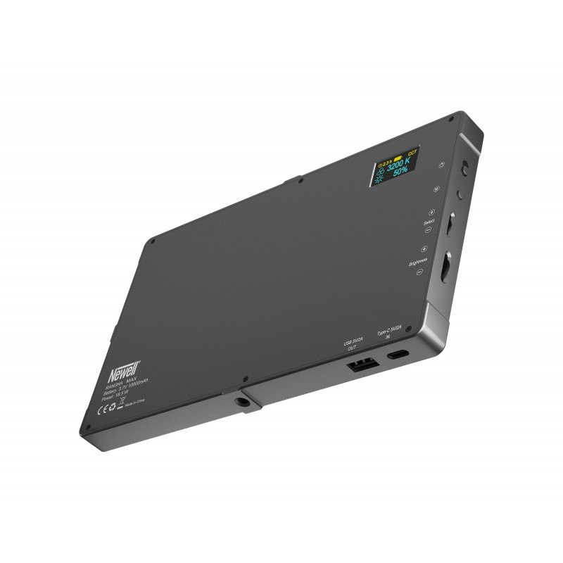 The Newell RGB-W Rangha Max LED lamp is an upgraded version of the Rangha compact panel appreciated by photographers and filmmakers. Small and lightweight device offers a maximum luminous flux of 1650 lumens, adjustable color temperature in the range of 3200 K – 5600 K, and HSI color palette with adjustable saturation. You can use it to illuminate the film set, product photography, street or macro photography. The flash will also be perfect for working on videos or animations. Ergonomic knobs and buttons allow you to quickly switch between different settings, and a small backlit screen makes your work even easier. The manufacturer did not forget about 21 special effects, such as strobe, police car lights, candle flame or fireworks. Main product features a compact LED lamp that is ideal for the world of film and photography maximum light output of 1650 lumens adjustable color temperature from 3200 to 5600 K possibility to set the light output in the range from 1% to 100% 360 colors available in the HSI palette adjustable color saturation from 1% to 100% comfortable operation with ergonomic knobs and buttons located on the side edge of the device operation is provided by 2 buttons and an ergonomic knob 21 preset special effects divided into 7 groups USB port for charging devices from the lamp convenient lamp charging via USB-C port included 2 cold shoe adapters (including one installed on ball head) convenient mounting in camera or camcorder “sled” 3 mounting threads allowing to mount additional accessories Small size, big capabilities Newell RGB-W Rangha Max is an LED lamp with maximum light output of 1650 lumens. This device is a “must have” for any photographer, filmmaker, vlogger or influencer publishing videos on YouTube or TikTok. A small lamp will help many times to illuminate frames, add color effects or highlight key emotions. It’s also a great choice wherever you’re filming or photographing on a macro scale. Product photography, LEGO bricks, dioramas, models, insects, plants – everywhere Rangha Max will be perfect! Adjust power and color temperature The Newell RGB-W Rangha Max offers many amenities familiar from larger lamp models. Ergonomic knobs and buttons will allow you to conveniently set the brightness of light, according to your current needs. The manufacturer did not forget about the color temperature adjustment (from 3200 K to 5600 K), which can be quickly adjusted to the conditions or specific needs of your frames and shots. Magic color feeria With the help of Newell RGB-W Rangha Max lamp, your photos and videos can be supplemented with colorful light that will add a unique touch to your shots and frames. The HSI palette is 360 colors that you can adjust to your needs by adjusting their saturation. That’s 36,000 different color combinations! You do not need to use effect foils or filters that are offered by mobile applications. A small lamp will allow you to get unique colorful effects just by pressing the shutter button or the “record” button! Hollywood special effects Newell RGB-W Rangha Max offers 21 unique special modes, which are divided into 7 groups. These are unique lighting effects, based on different sequences of colors or flashes. They allow you to simulate a flash, TV, candle, fire, strobe, fireworks, disco lights or the roar of a police car. The Newell RGB-W Rangha Max will let you feel the magic of cinema, without having to reach for additional accessories! Lamp and powerbank in one Newell RGB-W Rangha Max LED lamp is equipped with over 2 times more capacity battery, compared to the older sister. 10000 mAh will allow you to use a portable source of light for up to 3 hours on a single charge! On the body of the device, in addition to the USB-C port that allows you to replenish the power of the lamp, there is also a USB port. Thanks to it you can turn the lamp into a powerbank and easily charge your smartphone, headphones or other accessories accompanying you on the shooting or photographic set. High quality workmanship Newell RGB-W Rangha Max LED lamp with its dimensions resembles a small tablet or pocket calendar. The lightness of the device and small dimensions will allow you to fit it into almost any photographic bag. Housing made of aircraft grade aluminum will provide optimum protection in all conditions. The device also offers three ¼ inch threads. Thanks to them you can easily install the lamp on a tripod, cage or rig, as well as connect it to additional accessories such as microphones, sound recorders or preview screens. Accessory kit In addition to the lamp itself, in the box you will also find additional accessories that will make your work easier and more comfortable. The soft case will provide optimal safety in transport, and the USB-A/USB-C cable will allow you to charge the device. The set also includes two adapters with cold shoe for mounting in the “sled” of the camera. One of them is equipped with a small ball head. This solution will help to precisely adjust the angle of the lamp. Specification model: Newell RGB-W Rangha Max max. luminous flux: 1650 lumens (100% / 5600 K) max. wattage: 18.5 W CRI ratio: >96 color temperature: 3200 K – 5600 K brightness: 1 – 100 % saturation: 1 – 100 % HSI: 0 – 360 ° max. luminous flux for HSI (H = 100% / L = 100%): red – 750 lm green – 950 lm blue – 220 lm predefined scene simulations: 21 pre-defined programs rechargeable battery: 1000 mAh (3.7 V) USB-C port: 5 V / 2 A USB-A port: 5 V / 2 A dimensions: 200 x 121 x 13.7 mm weight: 508 g Kit contents Newell RGB-W Rangha Max LED lamp USB-A / USB-C cable ball head with cold shoe adapter with cold shoe eti