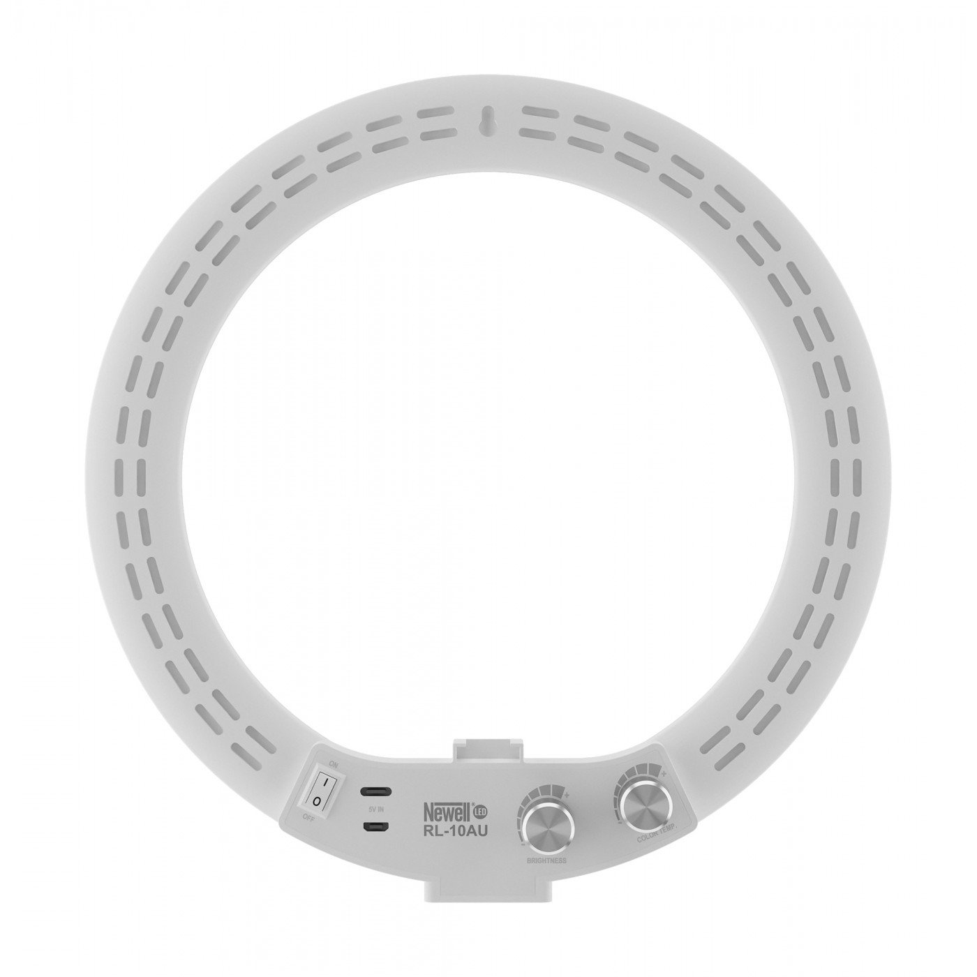 The Newell RL-10A Arctic White LED Ring Light is an invaluable aid in portrait, product and macro photography. The device will also work well for vloggers, streamers or tiktokers looking for a handy light source to complement their home studio. The Newell RL-10A is also a great way to evenly illuminate faces among makeup artists. The ergonomic power and color temperature adjustment will allow you to fine tune the lamp’s parameters to suit your current needs. The included tripod and smartphone or camera holders will ensure comfortable work in any conditions. Main Features of Newell RL-10A Arctic White LED Ring Light adjustable power and color temperature warm and cold light built-in diffuser included smartphone holder with flexible arm and ball head powered by USB-C or micro USB port possibility to hang the lamp on the wall (hook hole) stands included Natural soft light The Newell RL-10A Arctic White ring light has a built-in diffuser, ensuring pleasant and soft light without the need for additional accessories. You can adjust power and color temperature with ergonomic metal knobs. Thanks to the ring construction, the flash provides an even distribution of light both on the faces of models and on the photographed objects. Support for various devices The lamp comes with a small guide that allows you to plug in a smartphone or camera mount. Both of these accessories can be found in the kit, so that the device will be ready for use immediately after unpacking. The smartphone holder has a flexible arm and ball head. This allows you to precisely set the frame no matter what the subject of your photo is! Stable light source The set comes with a fold-out tripod, which will allow you to set the lamp in the right position and quickly change its position if necessary. Another advantage is the height adjustment, which will improve the pace of work, when photographing people of different heights or objects of varying sizes. Multiple power ways Included with the Newell RL-10A LED ring light, you’ll find a USB-C power adapter. However, your options don’t end there! You can connect the lamp to a power source via your smartphone’s AC adapter, a powerbank, or the USB output on your laptop. There is also an additional micro USB port on the body of the device. This is in case you don’t have a USB-C cable handy! Many years of experience When you buy Newell brand products you choose years of experience backed by thousands of positive reviews from satisfied customers, including both professionals and amateurs of photography and film. Bet on high quality and join Newell family! Specification model: Newell RL-10A Arctic White maximum power: 8 watts LEDs: 56 x 3200 K, 56 x 5600 K maximum light intensity: 450 lux (at 0.5 m) power supply: USB DC 5V, 2A cooling type: natural ventilation Lamp dimensions: 254 x 15 x 312 mm lamp weight: 206 g minimum tripod height: 27 cm maximum tripod height: 43 cm Kit contents Newell RL-10A LED lamp stand USB-C (5V) power adapter smartphone holder head with cold shoe remote control