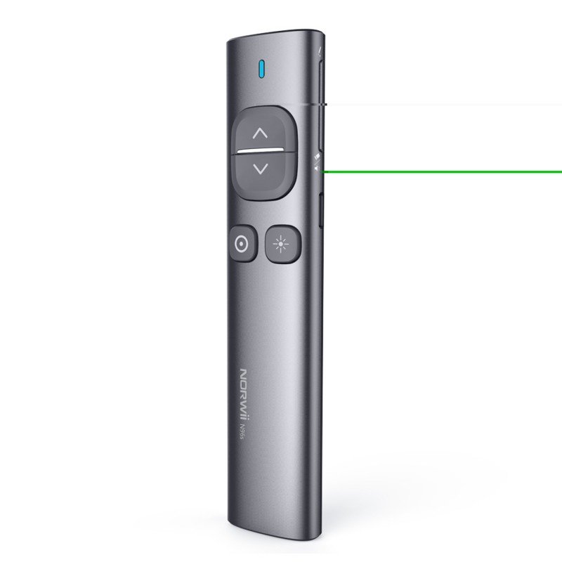 Norwii N96s multimedia presentation remote control with laser pointer is an elegant and stylish device that will enhance any lecture, presentation, conference speech or talk. The 50-meter range will allow you to move freely around the room, change slides and conveniently mark important elements on the screen. However, the laser pointer is not everything. The device can also serve as a mouse.
