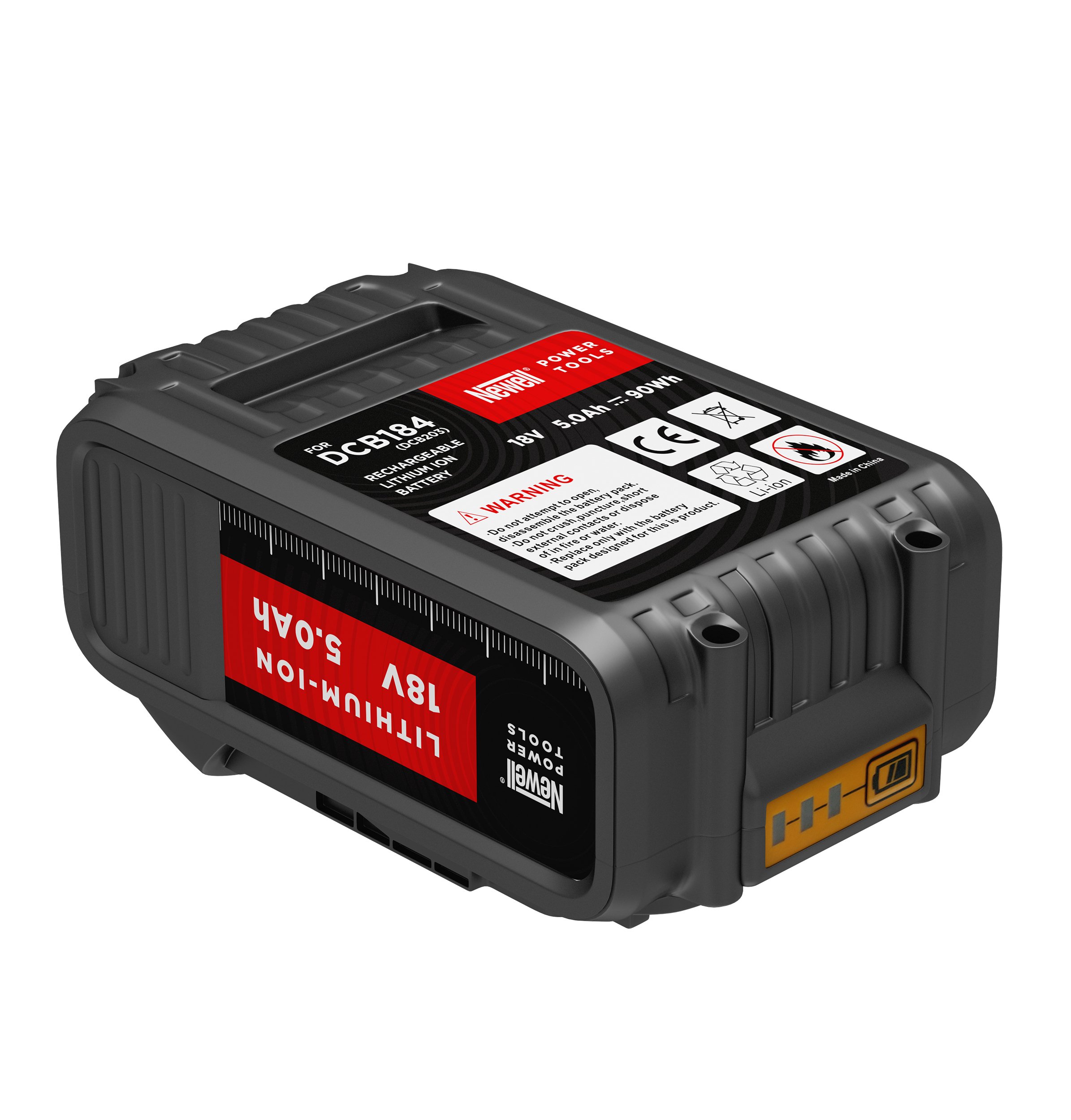 Being a home DIYer or a professional who was born with a screwdriver in your hand, you must know the importance of a good and reliable power source for your power tools. Newell brand replacements guarantee high quality, safety and full compatibility, all at an attractive price. Main features of Newell DCB184 battery: – full compatibility with devices using DeWALT DCB184 – large capacity – 5 Ah / 90 Wh – intelligent power management – IC System – charge level indicator – 3 LEDs – high quality materials – housing made of durable plastic