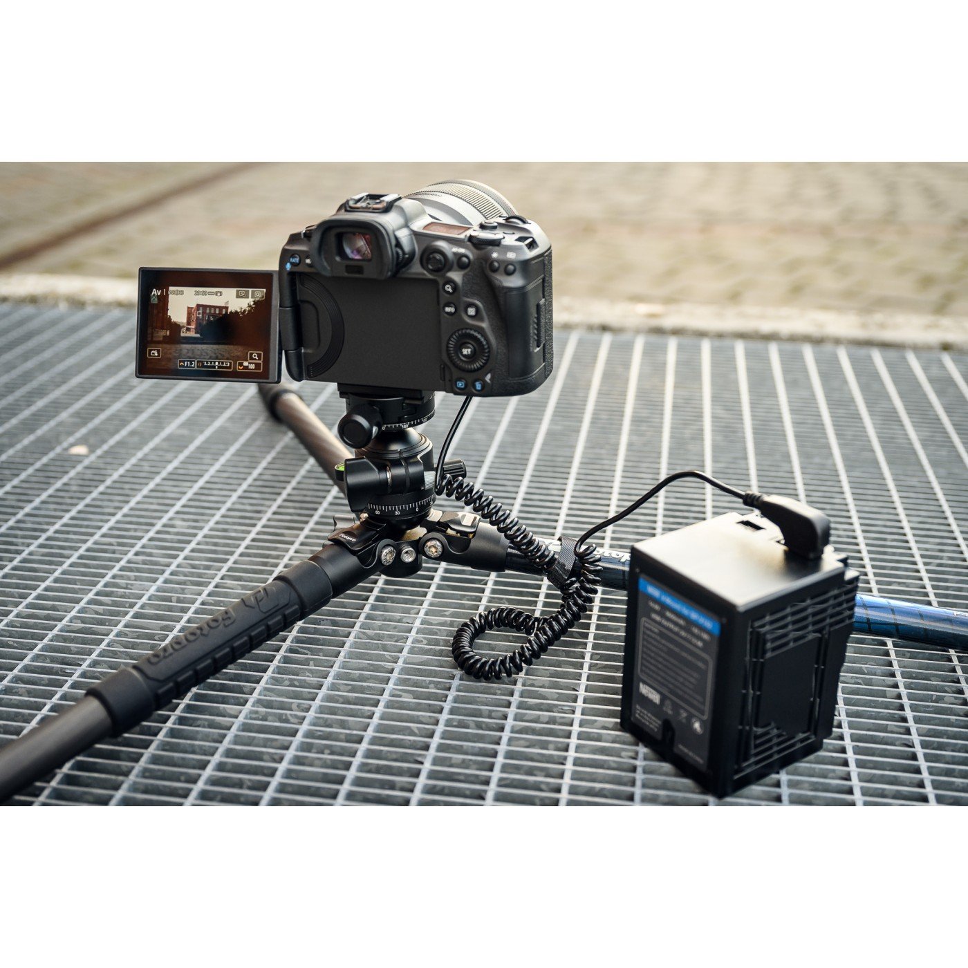 The Newell D-Tap to LP-E6 power adapter is a device that allows you to externally power your camera from professional V-mount (V-lock) batteries. It’s ideal for people who want to increase their device’s maximum runtime on a single charge, or forget about having to change batteries for longer. Are you recording timelapses, recording multi-hour webinars and streams or doing live broadcasts? A D-Tap battery adapter will make your job easier. Its design is perfectly matched to the battery compartment, and the spiral cable will facilitate comfortable filming, extending over 100 centimeters.