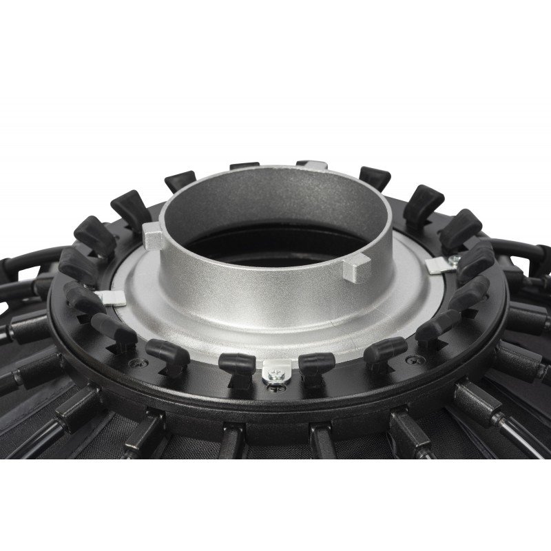 The Newell Scatto is a high-quality parabolic softbox with a diameter of 90 cm. Its interior is filled with a special silver coating that acts as a reflector. The softbox will allow you to soften the light emitted by your flash by eliminating deep and harsh shadows.