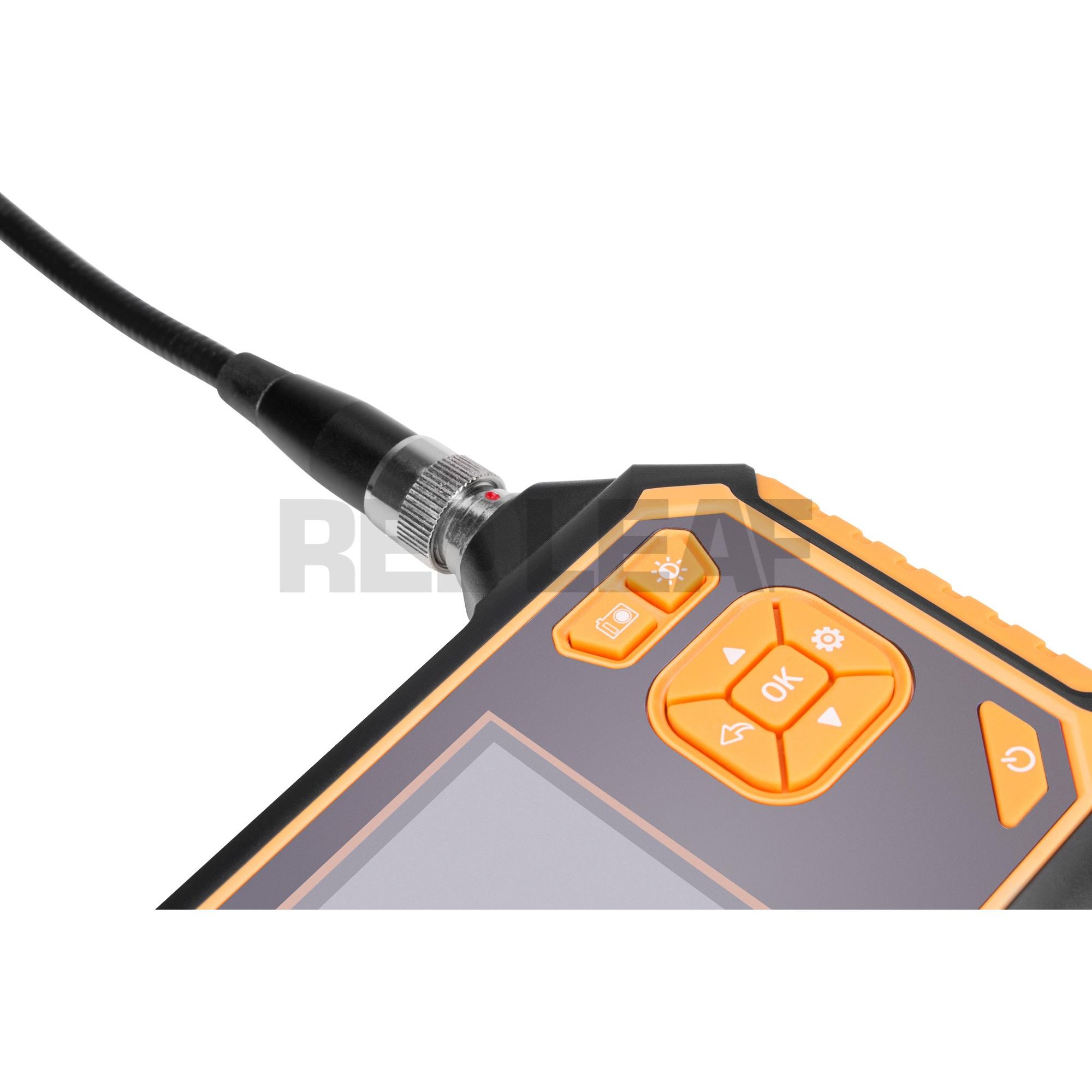4.3-inch LCD monitor The images recorded with the Redleaf RDE-1005MR inspection camera can be viewed in real time on the included 4.3-inch LCD monitor. Profiled rubber grips ensure a secure grip during operation. The monitor module is also equipped with a bright flashlight and navigation buttons for easy control of endoscope settings. Image quality and filming in the dark The camera installed in the Redleaf RDE-1005MR endoscope allows you to record movies and photos with a maximum resolution of 1920 x 1080 pixels. LEDs around the lens allow you to record in complete darkness, while Auto Focus ensures automatic focus. This allows you to see the smallest details of your subjects, even in places where no light comes in. In addition, the backlight power can be adjusted with a dedicated button. The image recorded with the use of an endoscope can be saved on a microSD card (to be purchased separately). Multifunctional overlays The set includes special overlays, which will further expand the practical use of the Redleaf RDE-1005MR endoscope. Magnet and hook will allow you to extract small objects from hard-to-reach places. On the other hand, the mirror cap will turn the endoscope into a small periscope, which will allow you to film and take pictures at a different angle. Rigid cable The use of a rigid cable in the device enables convenient modeling of its arrangement. It makes it easier to adjust the shape of the cable to the space in which we want to use it. Resistance to water and dust The device meets the IP67 standard, which means that the endoscope can be submerged in water (not applicable to the monitor module). This is useful, for example, when diagnosing problems with leaking or clogged hydraulic systems. Specifications – model: endoscope with Redleaf monitor RDE-1005MR – maximum resolution: 1920 x 1080 px – the diameter of the camera: 8 mm – angle of view: 70° – sharpening range: from 4 cm to 500 cm – Water resistance: IP67 (not applicable to monitor) – Lighting: o 6 LEDs (3-stage intensity control) o a flashlight built into the monitor – the battery: 2600 mAh (removable) – working time per charge: 4 h – the length of the cable: 5 h – type of conductor: rigid – Supported memory cards: microSD (TF) Set contents – an endoscope with a 5-meter rigid cable – 4.3-inch LCD monitor – USB cable – micro USB – micro USB – 3 special attachments (mirror, hook and magnet) – protective cap – a plastic box for storing the caps – 2 hook-and-loop fasteners to fasten the coiled cable