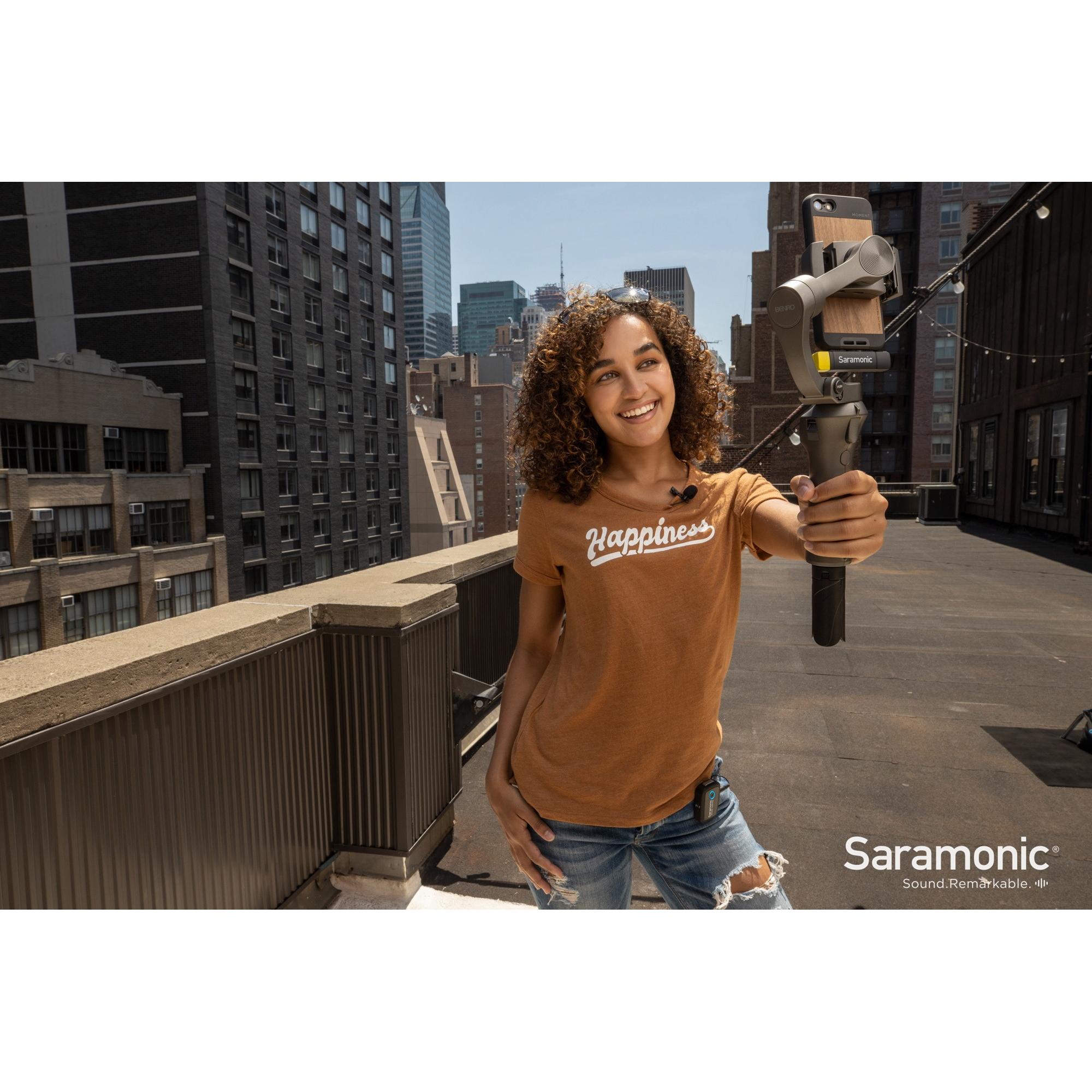 Some wireless microphone receivers are complicated to operate, but the Blink 500 RXUC is so technically advanced that it couldn’t be easier to use. There are no controls to adjust, but the device does a lot behind the scenes to ensure excellent performance. It operates on the interference-free 2.4GHz spectrum, and automatically hops channels to avoid static noise and audio dropouts. Pairing with transmitters is simple, and all of the complicated aspects of using wireless microphones happen seamlessly in the background, letting you concentrate on storytelling and getting a great shot. Handheld gimbal, meet wireless sound. Handheld gimbals have the amazing ability to deliver cinematically smooth video footage that makes it feel like the camera is floating, but one area where they suffer is audio. It’s simply too difficult to attach external microphones or wireless receivers without throwing off the balance of the device. The RXUC changes this story. It’s small and lightweight enough to remain mounted to your mobile device and won’t interfere with the motors or arm of your gimbal. You can finally capture perfect sound with your mobile gimbal footage when used with Blink 500 TX transmitters (sold separately). Blink 500: a diverse ecosystem. There’s a large family of innovative Blink 500 wireless microphone products and they’re are all ultra-compact, lightweight, and fully compatible with the Blink 500 RXUC. The Blink 500 TX is a tiny wireless transmitter with a high-quality built-in microphone, an external mic input (it comes with an external lavalier mic), a built-in Lithium battery, a USB-C charging port, gain buttons and multicolored LEDs. The Blink 500 RX is a dual-receiver that was designed to be mounted to the shoe of a camera and can handle up to two 500 TX transmitters at the same time. The Blink 500 RXDi is very similar to the RXUC except it has a Lightning connector for the Apple iPhones and iPad. It works perfectly with handheld gimbals, too. All of the receivers can handle up to two Blink 500 TX transmitters at the same time. An ideal wireless system. Even if you shoot video with a mobile phone or tablet, wireless microphones are still completely essential tools for video production, and the fact that the Blink 500 is one of the smallest and most lightweight systems you can get yet it still delivers professional quality sound makes it ideal for filmmakers, journalists, vloggers, YouTube creators, corporate video producers, or any content creator that needs an incredibly easy-to-use wireless system that won’t slow them down. If you shoot video with an Android smartphone and a handheld gimbal, the Blink 500 RXUC is the best solution available for perfect sound from up to two wireless transmitters (sold separately). The RXUC is small enough to tuck away in a small pocket, so you can effortlessly bring it with you everywhere you go. Plus, the Blink 500 series is an evolving system of products that will soon be expanding, giving users even more options and versatility. In The Box 1 x Blink 500 RXUC Dual-Receiver with USB-C Connector 1 x Pairing Pin Specifications Frequency: 2.4GHz Oscillator type: Gaussian Frequency-Shift Keying (GFSK) RF Frequency Band: 2400 to 2483.5 MHz Signal to Noise Ratio: ≥70dB Voice Delay: ≤6ms Distortion: ≤0.1% Digital Resolution: 24-bit / 48kHz Frequency Response: 20Hz to 16kHz Max Operating Range: 98.4’ (30m) with Obstacles, 164’ (50m) in Open Area Antenna: Built-in 1/4λ Wire Antenna Connector: USB-C Male Button: Pairing Pinhole Button Indicator: 1 LED, Blue. Flashing Quickly: Paring, Flashing: Not Paired with Any TX, Solid Blue: Paired with TX Operating temperature: 0℃ to 50℃ Storage temperature: -20℃ to +50℃ Dimensions: 3 x 0.65 x 0.43” (76 x 16.5 x 11mm) Weight: 0.35 oz (10g)