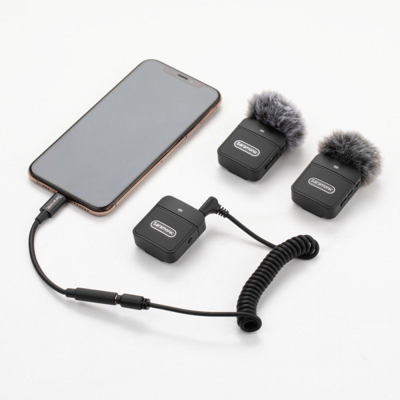 Saramonic Blink100 B2 Wireless Audio Transmission Kit (RX + TX + TX) The Saramonic Blink100 B2 Wireless Audio Transmission Kit (RX + TX + TX) will conveniently allow you to work with cameras, camcorders, audio recorders, computers, smartphones and tablets equipped with a 3.5mm mini jack socket. It includes 1 Blink100 RX receiver and 2 Blink100TX transmitters. It is the ideal choice for those who want to record audio from 2 sources simultaneously. This system is sure to be appreciated by web developers, youtubers and webinar creators. The audio transmission range between the microports is 50 metres. A full charge of the built-in batteries will provide up to 10 hours of continuous operation. The devices are equipped with an automatic pairing system and noise cancellation mode. The kit does not lack the necessary cables and deadcat wind shields. Main product features wireless audio transmission kit with 1 receiver and 2 transmitters compatible with devices equipped with a 3.5mm mini jack socket (TRS and TRRS) ideal for use with digital cameras, DSLR cameras and audio recorders, as well as smartphones or tablets equipped with a 3.5 mm mini jack socket a great choice for vloggers, youtubers, web creators and journalists ultralight and compact in size transmitters with built-in omnidirectional microphones recording 360º sound intelligent ambient noise cancellation system fast automatic pairing of transmitters with receiver transmitters and receiver equipped with clips for attaching to clothing colour LED to indicate operating status maximum range is 50 metres up to 10 hours of operation on a single charge charging of transmitters and receiver via popular USB-C port wind shield included Tens of uses The microports included in the kit (2 transmitters and 1 receiver) are perfect for the nature of vloggers, journalists, video makers and filmmakers working at weddings and conferences. The Saramonic Blink100 B2 Wireless Audio Transmission Kit (RX + TX + TX) provides a maximum signal range of 50 metres. This allows the people being recorded to move freely with the transmitters and the high quality sound will be captured by the receiver without any interference. Great sound quality Working with the Saramonic Blink100 B2 Wireless Audio Transmitter Kit (RX + TX + TX) will ensure that on-camera speeches, interviews, streams, lectures and conversations are recorded loud and clear. The omni-directional microphones built into the transmitters will work well wherever you want natural sound recorded from two independent sources (ideal choice for 1-on-1 interviews!). If you’re not fond of tangled tie microphone cables, this solution is sure to meet your expectations! Sets of compatible devices The Saramonic Blink100 B2 Wireless Audio Kit (RX + TX + TX) is all you need to comfortably record high-quality audio with dozens of different devices. Smartphones, tablet audio recorders, cameras, camcorders, audio interfaces and mixers – just make sure the device of your choice has a 3.5mm mini jack port! You will also find a cable included to ensure proper connectivity to such a jack. Get to know the whole Blink100 family! The devices you use to record audio don’t have a 3.5mm mini jack socket? No problem. The Saramonic Blink100 family has no shortage of kits offering alternative receiver versions. These were created specifically for users of modern smartphones, tablets and computers. Variants B3 and B4 connect easily to iPhones and iPads equipped with Lightning ports. The B5 and B6 sets will be a great choice for those who want to record audio from a USB-C port. RXDI AND RXUC RECEIVERS ARE NOT PART OF THE KIT. BEFORE YOU BUY, PLEASE MAKE SURE YOU CHOOSE THE RIGHT PRODUCT VARIETY. Up to 10 hours of uninterrupted operation A fully charged Saramonic Blink100 B2 Wireless Audio Kit (RX + TX + TX) can provide up to 10 hours of uninterrupted operation. This means you can record several episodes of your YouTube show, shoot an all-night wedding, and complete a lengthy interview or report in a single day without rushing. Environmental noise reduction The “+” and “-” buttons, which you will find on the casing of the transmitters, allow you to adjust the signal gain (“gain”). Pressing them simultaneously also enables the special ambient noise reduction mode to be switched on or off. The microports also come with high-quality deadcat covers. These will reduce unwanted wind noise when recording outdoors. Always-on-your-place Both the Blink100 TX transmitters and the Blink 100 RX receiver are equipped with a special clip, which allows the devices to be conveniently clipped to a shirt, blouse or jacket lapel. Using such a solution ensures that the microport stays in place. Compatibility Cameras, camcorders, sound recorders, mixers, computers, smartphones and tablets equipped with a 3.5 mm mini jack socket Specification Model: Saramonic Blink100 B1 Blink100 RX receiver digital transmission: 2.4 GHz bandwidth: 20Hz – 16 KHz range: up to 50 m output power: 6 dBm ports: USB-C, mini Jack 3.5mm dimensions: 39 x 35 x 14 mm weight: 16.5 g Blink100 TX transmitter digital transmission: 2.4 GHz directional characteristic: omnidirectional bandwidth: 20Hz – 16 KHz signal-to-noise ratio (SNR): > 80 dB built-in microphone sensitivity: -39 dB ± 2 dB range: up to 50 m operating time on one charge: approx. 10 h built battery capacity: 90 mAh charging port: USB-C dimensions: 39 x 35 x 14 mm weight: 16.5 g Kit contents 1 x Blink100 RX receiver 2 x Blink100 TX transmitter 1 x 3.5 mm TRS / TRS cable 3 x USB-A / USB-C cable 2 x deadcat wind shield