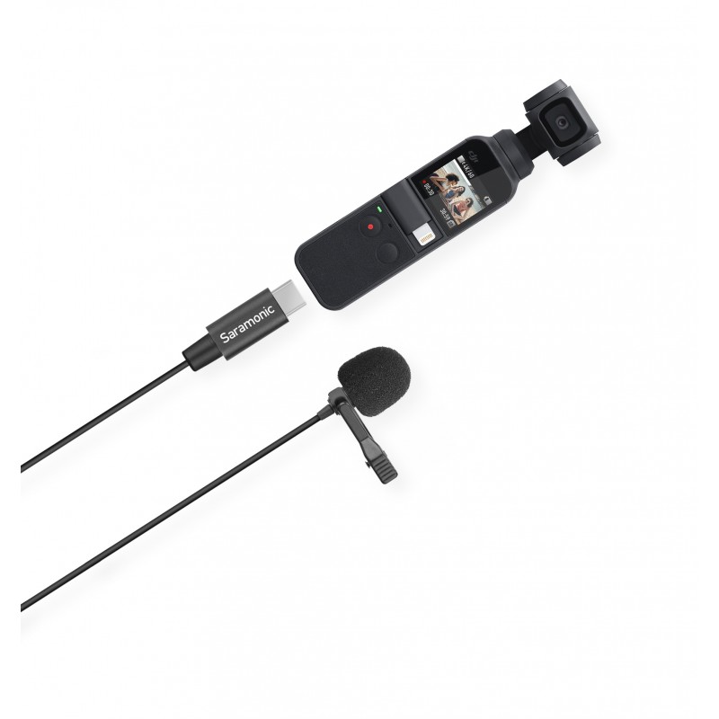 The Saramonic LavMicro U3-OP is a tie microphone designed to work with the DJI Osmo Pocket camera equipped with a USB type C connector. Small size Despite its small size, the LavMicro U3-OP significantly improves the quality of recorded sound compared to most built-in microphones in smartphones or tablets. It is characterized by high quality of recorded sound and omnidirectional characteristics, thanks to which you do not have to worry about the location of the lavalier. Necessary accessories The microphone has a clip that allows it to be cliped to your clothes, so it can be as close as possible to the person speaking. The dome of the microphone is equipped with a foam wind shield, which reduces the noise caused by air movement. Application The LavMicro U3-OP is the ideal tool for anyone looking for a compact, discreet solution for amateur or professional video recording with the DJI OSMO Pocket. The U3-OP is compatible with most audio recording applications that can be found in application stores. Compatibility – DJI OSMO Pocket Specification – Output: USB-C connector – Affection: -32 +/- 3dB (0dB = 1 V / Pa, at 1 KHz) – Characteristics: omnidirectional – Signal-to-noise ratio: 60 dB – Amplification level: 12 dB – Band: 50 Hz-20 kHz – Sampling rate: 44,1 kHz / 48 kHz / 96 kHz – Power requirements: supplied by DJI OSMO Pocket – Transmission speed: 16 bits / 24 bits – Cable length with microphone: 2 m – Weight: 20 g – The weight of the microphone: 17 g Set contents – Tie microphone LavMicro U3-OP – Soft cover – Wind foam – Clasp clip
