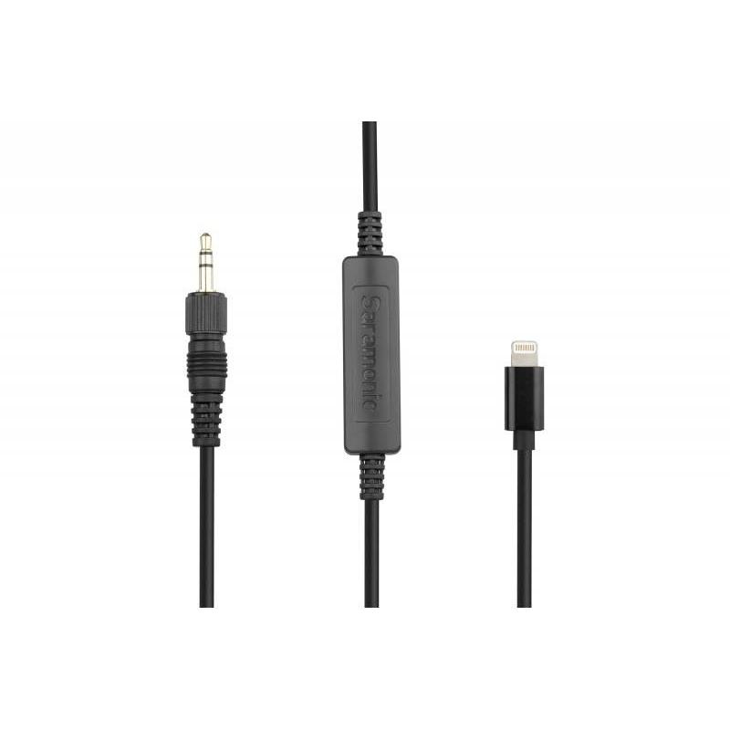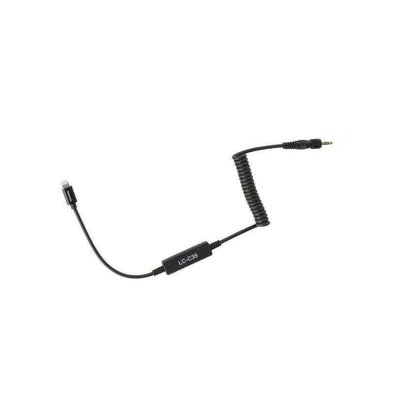 The Saramonic LC-C35 is a premium audio cable featuring a mini Jack TRS (3.5mm) connector and Lightning connector. The cable allows audio devices to be connected to devices equipped with a Lightning connector. The accessory is designed to work with components of the Saramonic UwMic9, VmicLink5 and SR-WM4C wireless audio transmission systems and other devices with a mini Jack TRS socket. Aluminium, gold-plated contacts and cables made of high-quality materials guarantee clear, noise-free sound. Rubber insulation protects the cables from mechanical damage. The screw-on ring prevents the mini Jack plug from accidentally being disconnected from a socket fitted with a compatible thread. The spiral twist of the cable reduces the space taken up by the cable and the risk of entanglement. Specifications Connectors: Right connector type mini Jack TRS (3.5 mm) with safety lock lightning connector spiral cable length: 35 – 45 cm weight: 25 g