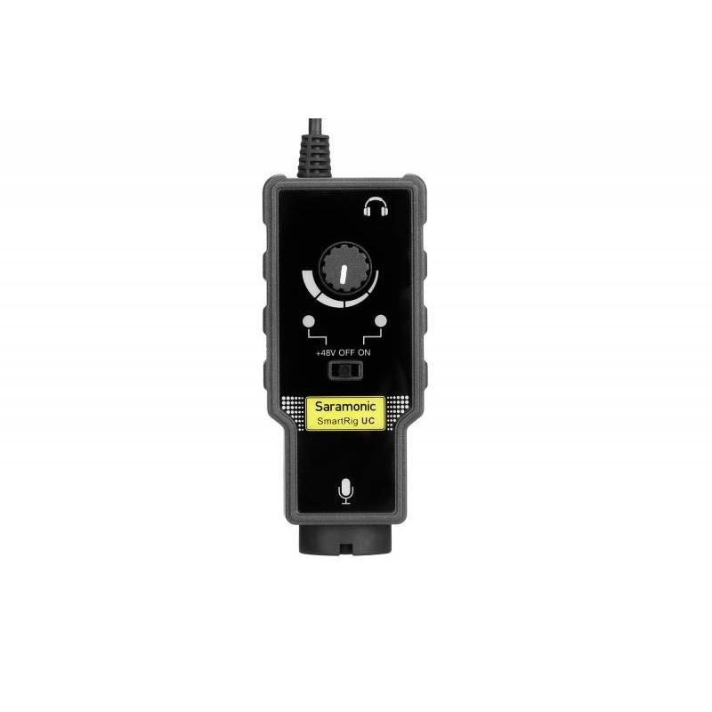 The Saramonic SmartRig UC is an audio adapter that allows you to connect any audio equipment to mobile devices that are equipped with a USB-C type connector. The SmartRig UC is equipped with an XLR / Jack TRS (6.35mm) input that allows you to connect a microphone, console or guitar to a professional standard. Phantom power support ensures wide compatibility for supported microphones. The output signal is transferred to a smartphone or tablet via a USB-C type cable. The signal level can be adjusted analogue via a convenient knob. A mini jack headphone output allows you to listen to the recorded material in real time, making it easier to work with sound. The interface is ideal for situations where a single audio source is being recorded, such as interviews, vlogs or instrumental music recordings. The device is compatible with most audio recording apps available in the App Store. The SmartRig UC’s housing is made of high-quality plastic, making it resistant to scuffs and bruises. There is a belt clip on the back of the device, allowing you to place the adapter in a convenient location. Specifications – power supply: 9 V battery – phantom power supply: 48V – signal input: XLR socket / TRS jack (6.35 mm) – signal output: USB-C plug with 50 cm cable – headphone output: mini Jack TRRS socket (3.5 mm) – frequency response: 20 Hz – 20 kHz (+/-0.5 dB) – signal gain: 23 dBu to – ꚙ – signal-to-noise ratio (SNR): 80 dB @ 1KHz, -30 dBu – harmonic distortion (THD): less than 0.01% @ 1 kHz, -30 dBu – sampling frequency: 44.1 KHz or 48 KHz – dimensions: 88 x 41 x 42 mm – weight: 75 g Compatibility – audio equipment equipped with an XLR / Jack TRS (6.35 millimetre) output – brand mobile devices that have a USB-C connector type Kit contents – SmartRig UC adapter – Velcro for attachment.