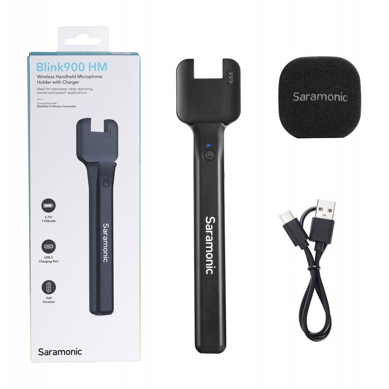 The Saramonic Blink900 HM Handheld Mount for Transmitters is a revolutionary device that will easily transform the Blink900 TX microport into a reporter microphone. The clip-on mount allows you to connect accessories in a second.