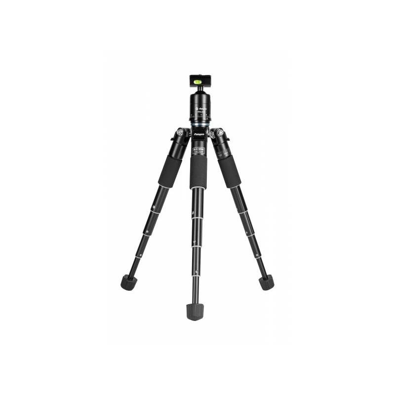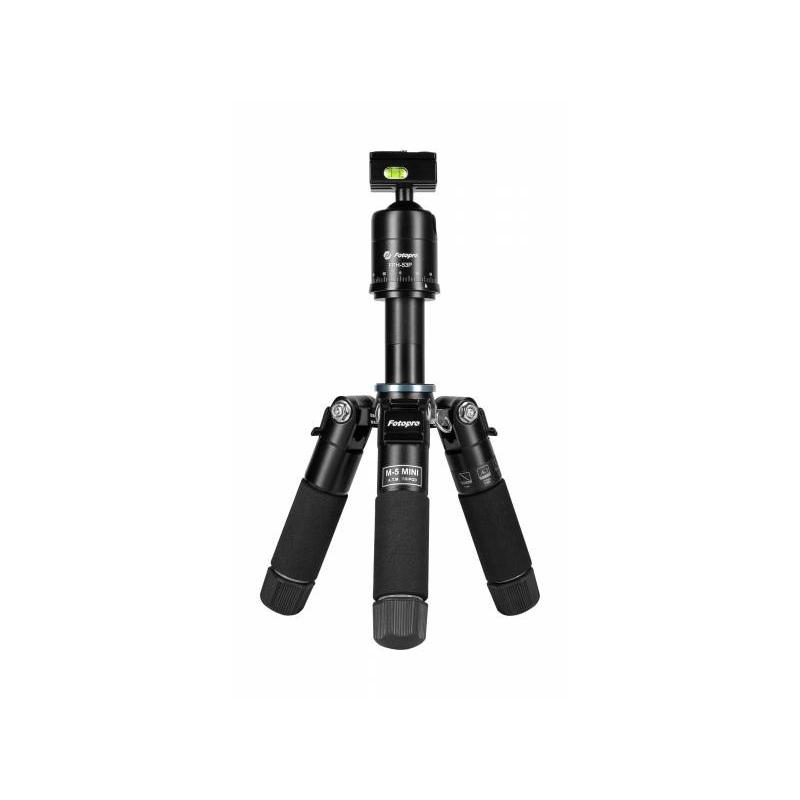 The Fotopro M-5 Mini tripod is designed for those looking for highly functional, mobile equipment of the highest quality. It is the ideal choice for photographers – travellers, those using lightweight DSLR or mirrorless cameras and macro photography enthusiasts. Small tripod with big capabilities The M-5 Mini tripod is made from the highest quality aluminium alloy. The design provides high stability with low own weight and offers a load capacity for equipment weighing up to 8kg. The central column can be mounted inverted (upside down), making it easier for macro photography and taking shots from a so-called ‘frog’s perspective’, among other things. It is constructed from two modules. Using just one of them, the minimum working height of the tripod is only 13.7 cm. The M-5 Mini has a three-stage leg tilt system. In addition, they can be folded in reverse to reduce dimensions for transport. The clamps are based on the proprietary Quick Twist Lock System, which makes it quick and easy to set up or fold the tripod. The standard 3/8″ thread allows the attachment of any head (with 3/8″ thread). The tripod is perfect for use with SLR, mirrorless, compact cameras and camcorders. A convenient pouch is included to attach the tripod to a belt or bag. Ball head The M-5 Mini tripod is equipped with the FPH-53P ball head with Arca Swiss standard quick-mount plate. The head has a set of three spirit levels and a quick release lock to prevent accidental unplugging of mounted equipment. There is a 360° scale on the swivel base of the head to facilitate precise panning. Highest quality and guaranteed reliability Thoughtful design, top quality materials and precision workmanship ensure that the product will last for years. In addition, all Fotopro tripods come with a six-year warranty! The Fotopro M-5 Mini tripod is an excellent choice for professionals and advanced amateur photographers expecting top quality workmanship and high mobility. Specifications Stand (without head) model: M-5 Mini colour: black maximum load: 8 kg weight: 0.51 kg maximum working height: 39 cm minimum working height: 5.5 cm height in transport position with head: 15 cm number of leg sections: 5 leg locking type: Quick Twist Lock System head attachment: male thread 3/8″ extendable, fold-out central column head model: FPH-53P colour: black fabric: aluminium maximum load: 8 kg weight: 0.27 kg height: 8.2 cm base diameter: 4.3 cm ball diameter: 3 cm Arca Swiss standard quick-mount plate measuring 4.2 x 4 cm with 1/4″ hole for tripod thread 3/8″ three spirit levels an angle graduation Kit contents Photopro M-5 Mini tripod Photopro FPH-53P ball-head with Arca Swiss standard quick-mount plate bag with hip / shoulder strap key to adjust tripod leg spacing resistance carabiner