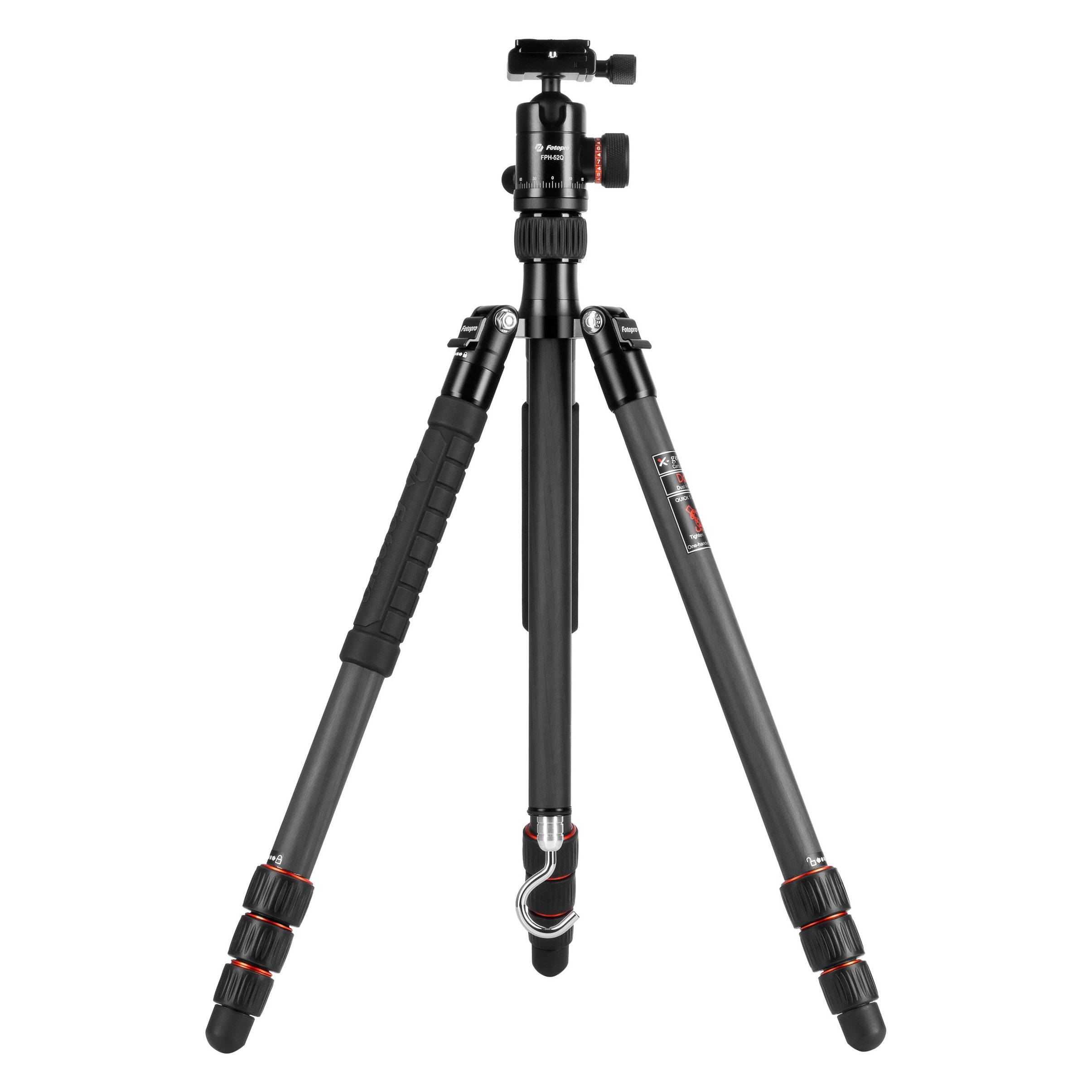 4-section column legs with quick release Strong locking system allows you to adjust the working height in several seconds. 2-in-1 tripod, one of leg can be used as a monopod. ( remove leg with slicone grip from canopy, remove flange palte from center collumn, install the flange palte onto the separated leg ) X-go Max tripod legs are made of high-quality Carbon Fiber Material. 180-Degree Reverse Folding : Only 18.7 inch (47.5 cm).(included a portable tripod carrying bag) This tripod adds a special function: 2-in-1 tripod, one of the leg can be changed into a lightweight monopod or alpenstock within seconds (Monopod pouch is included) Detachable Center Column Height Reduction: The bottom part of the center column is detachable. The center column consists of 2 sections which is still reversible to achieve low angle shooting Ball head is compatible with almost all DSLR cameras and camcorders,Universal and fashionable quick release plate is specially designed for travel and outdoor photograph activities Our professional tripods, monopods, and ball heads come with a 6-year warranty.the Alu-mag forged technology and the CNC precision cutting technology have been applied to this tripod What’s in the Box 1 X Tripod 1 X FPH-52Q Ball head 1 X Quick release plate 1 X Carry Bag 1 X Manual Instructions 1 X Versatile Wrench 1 X Monopod pouch 1 X Removable rubber feet 1 X Packing box 1 X Weight hook Product Specification Model No:X-go Plus Color: Black Material: Carbon Fiber Net Weight: 1.035kg (2.28lbs) Sections: 4 Max Tube Diameter: 25MM Max Height: 1488MM (58.58 inch) Folded Height: 430MM Min Height: 345MM Load Capacity: 15KG (33.06lbs)