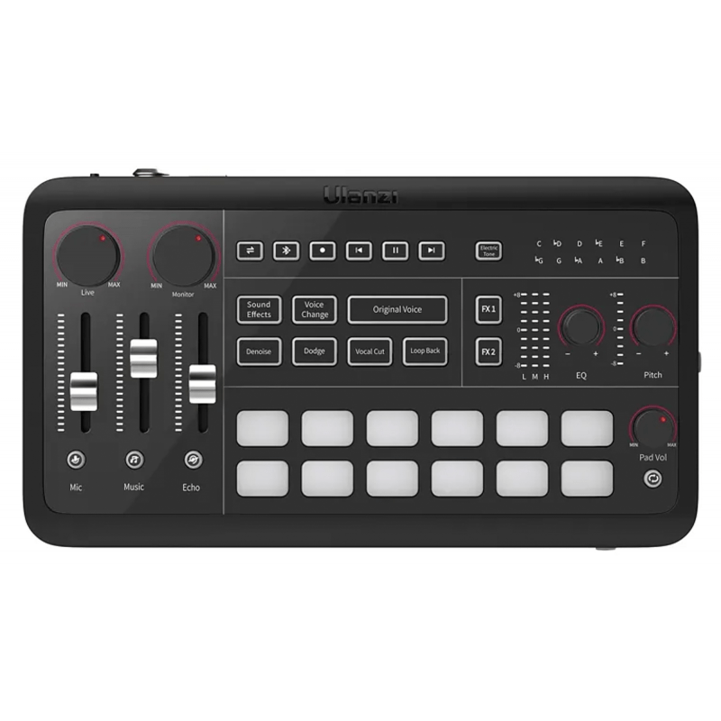 The Ulanzi Ucaster AX01 audio interface is an advanced device that will improve the quality of your recordings, streams and podcasts, make your audio work easier and take your productions to an even higher level. It supports up to 5 microphones, offers numerous outputs and inputs and full compatibility with computers, smartphones and tablets. Thanks to a dual DSP processor and OTG transmission, the unit provides excellent sound quality. Support for 48V phantom power enables operation with professional XLR microphones. The intuitive user interface, personalised sound and lighting effects and built-in Bluetooth make it the ideal tool for streamers, podcasters and all creative creatives. Main product features multi-purpose audio interface ideal choice for: streamers, podcasters, musicians, producers, video content creators, karaoke hosts, live marketers, online teachers support for up to 5 microphone inputs, 3 monitor outputs, 3 live outputs and 3 auxiliary audio inputs dual DSP processor and OTG data transmission for lossless sound quality compatibility with Mini XLR, USB, 3.5 mm microphones possibility to connect to a 3.5 mm TRRS port built-in Bluetooth module for playing music directly from your phone support for 48V phantom power (optimum operation of XLR microphones) personalised sound effects to spice up your live broadcast 3-level noise cancellation selectable backlighting colours and button brightness level vocal effects to change the timbre of your voice personalization of light effects accompanying the buttons personalization of button lighting effects convenient saving of settings conveniently saves your settings intuitive user interface for easy mixing of sounds compatibility with computers and smartphones Compatibility with PCs, smartphones, tablets and camcorders (including Windows, Linux, Mac OS, iOS and Android) Special effects that are ideal for use with your own sound system special effects that are ideal for game streaming, karaoke, online chats and live sales Slot for TF memory card Capacitor card slot ready to use straight out of the box – no complicated configuration What is an audio interface? An audio interface is a device that allows you to connect microphones, musical instruments and other audio sources to your computer, tablet or smartphone. It allows you to record, edit and process audio at a professional level. Interfaces such as the Ulanzi Ucaster AX01 not only improve the quality of recordings, but also offer advanced features such as support for multiple microphones, sound and vocal effects, multi-device management, and 48V phantom power for XLR microphones. The audio interface is a must-have item on the desk of any creative artist who cares about the highest audio quality. Support for multiple audio sources Support for up to 5 microphones simultaneously and numerous inputs and outputs allow for flexible audio management. This is ideal for podcasters who invite multiple guests to their shows, bands, vocalists and audio producers. Compatibility with a variety of microphone types allows you to conveniently use your current equipment without additional investment. Wide compatibility The Ulanzi Ucaster AX01 audio interface works with most live recording devices and platforms on the market. Whether you’re using a computer, smartphone or tablet this handy console is always ready to go. It’s the perfect tool for streamers, podcasters, musicians and video creators who want to enhance the quality of their productions. Unlimited creativity at your fingertips The Ulanzi Ucaster AX01 was created to enhance your audiovisual experience and take your projects to a whole new level. With features such as voice changes, a variety of vocal effects or removing vocals from tracks, you can create even more unique and engaging content. Whether you’re conducting karaoke, streaming games or participating in online sales chats, the Ulanzi Ucaster AX01 puts you in complete control of your audio. Excellent quality in every mix Featuring a dual DSP processor and OTG transmission technology, the Ulanzi Ucaster AX01 audio interface guarantees clear, noise-free audio. Support for 48V phantom power allows the use of professional XLR microphones, resulting in the highest quality recordings. Three-stage noise reduction will ensure that you can be heard loud and clear, even in more challenging acoustic conditions. Your sound, your rules Personalisation is key to standing out among creators operating on platforms such as Twitch, TikTok or YouTube. The Ulanzi Ucaster AX01 audio interface allows you to customise the tone of the sound, as well as the effects – those vocal and lighting – to your individual preferences. You can conveniently save your settings to enjoy a personalised package of specific features every time. Create an atmosphere perfectly suited to your style and attract the attention of your audience even more effectively. Intuitive operation from the first use The simple and clear user interface makes it extremely easy to operate the device. Clearly labelled sections, such as volume control, various sound modulations or special effects, allow you to act quickly and modify settings in real time. This allows you to focus on creating rather than on complex configuration. As an added bonus, the included device overlays make it even easier to find specific functions at a glance. Involve your audience Enrich your broadcasts with built-in sound effects such as laughter, applause or other special sounds to create an interactive and engaging atmosphere. The Ulanzi Ucaster AX01 audio interface is also the perfect set design element. Adjustable lighting effects allow you to adjust the colours and brightness to match the mood of your content. Ideal travel companion With its compact design, built-in rechargeable battery and ability to be powered from a variety of sources, the Ulanzi Ucaster AX01 can be the perfect companion for your travels. Easy integration with various operating sys