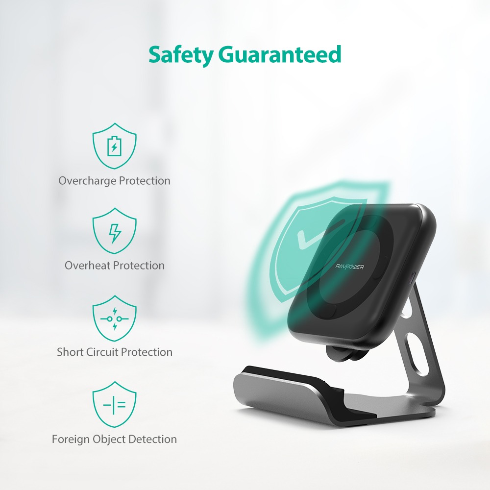 Conveniently power up your iOS and Android device by simply laying it down on the 10W Wireless Charging Stand from RAVPower.