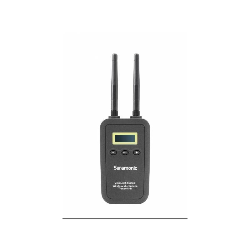 The Saramonic VmicLink5 RX + TX + TX + TX is an extensive wireless audio transmission kit providing freedom of work and the ability to receive signals from three transmitters. The advantages of the system will be appreciated by both professional sound engineers and amateur sound engineers. The VmicLink5 system allows the signal to be transmitted to the receiver from up to three transmitters (sampling frequency: 48 KHz / 16 bit) at a distance of up to 30 metres (in an open area). Operating at 5.8 GHz and using state-of-the-art digital technology, it eliminates interference from other radio transmitters in the environment. The automatic search function and selection of the best working channel will be particularly appreciated by professional filmmakers and reporters working in the field. The Saramonic VmicLink5 kit features a very elegant and ergonomic design. Its light weight and dimensions make the system extremely comfortable to use. The discreet design and ease of installation will be an asset to vloggers and journalists attending various interviews and conferences. The TX5 transmitters of the VmicLink5 HiFi system are equipped with microphone and line inputs, making them compatible with a wide range of microphones and other audio devices. The sockets are made in the popular mini Jack TRS (3.5 mm) standard. The receiver has a line output for connecting a recording device (camera, camcorder, recorder) and a headphone output for listening. Both in mini Jack TRS (3.5 mm) standard. The transmitters and receiver are equipped with clear LCD displays showing operating parameters such as range, volume, signal strength, etc. The VmicLink5 kit is powered by LP-E17 batteries allowing for over 6 hours of continuous operation. In addition to the transmitters and receiver themselves, the Saramonic VmicLink5 kit offers a set of practical accessories, including: microphone, batteries, charger, belt and camera mounts. As an added bonus, there is a hard case to accommodate all kit components, which is ideal for travelling. Specifications radio power (RF): 15 dBm (30 mW) operating frequency (RF): 5725-5875 MHz number of operating channels: 3 range: up to 30 m (in open terrain) Transmitter input ports: microphone input: mini Jack TRS (3.5 mm), max 160 mV / -13 dBu, 1.8 V phantom power line input: mini Jack TRS (3.5 mm), max 2 V / 8 dBu Receiver output ports: headphone output: mini Jack TRS (3.5 mm), max 70 W / 32 Ω signal output: quadruple microphone signal amplification sensitivity: 98 dB harmonic distortion (THD+N): -92 dB sampling frequency: 48 kHz / 16 bit frequency response: 40 Hz – 18 kHz (+/-1 dB) delay: 18 ms Power consumption: RX5: 180 mA / 6 V TX5: 140 mA / 6 V Antenna gain: 3 dBi Weight: RX5: 169 g (without battery) TX5: 169 g (without battery) Power supply: rechargeable lithium-ion battery LP-E17 (7.2 V / 1000 mAh) Dimensions: RX5: 11.3 x 6.4 x 2.8 cm TX5: 11.3 x 6.4 x 2.8 cm Operating temperature: 0°C – 50°C Storage temperature: -20°C – 55°C Contents of the kit RX5 receiver 3 TX5 transmitters 3 tie microphones 8 antennas 4 LP-E17 batteries battery charger mounting adapter (cold shoe and 1/4″ female tripod mount) 4 belt mounts microphone mounts XLR – mini Jack TRS (3.5 mm) cable with plug-in lock USB – microUSB cable for charger microphone attachment rigid carrying case