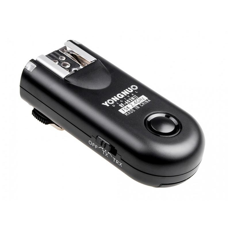 Yongnuo RF-603 II allow wireless radio control of the camera and triggering of system and studio lights from up to 270m away. It has a radio remote control function for triggering the camera. It operates at a frequency of 2.4 GHz and has the ability to set as many as 16 channels, which guarantees reliable operation of the device in all conditions.In the new version of the trigger, the switch has been relocated, making use even more convenient. In addition, the switch has become two-stage – it is possible to turn on the RF-603 II as a transmitter, or as a transmitter/receiver.This provides more convenient use of the trigger (it is possible to trigger connected lights “hand-held” without problems) and allows to extend the life of the batteries used. Unique for this kit is that it contains two modules, each of which can work both as a transmitter and receiver. This makes the kit very versatile and easy to expand.The RF-603 II can simultaneously trigger the lamp remotely and the other on the camera.The RF-603 II series lamp triggers operate at 2.4 GHz. This guarantees trouble-free operation and no interference. The device is powered by popular AAA-type batteries.This small kit is an absolutely essential device in your photography bag! Take the flash off your camera! With the Yongnuo RF-603 II Wireless Trigger, you can shoot with a sync time of up to 1/250s.You can also use the Yongnuo RF-603 II as a wired or wireless remote control for your camera with an effective range of 100m (up to 270m in tests)!The device supports the flash excitation function of the receiver. SPECIFICATIONS: FEATURES: Radio remote control for camera or trigger hose Wireless triggering of lamp system and cameras – any number Wireless triggering of reporter lamps Wireless triggering of studio lamps Frequency: 2.4 GHz Number of channels: 16 Range: up to 100m (up to 270m in tests) Power supply: 2 AAA batteries Maximum sync time: 1 / 250 sec Camera sync socket: 2.5mm Lamp sync socket: standard PC, hot shoe Top ports: hot shoe Shutter: two-stage: 1-autofocus, 2-trigger Supported flash port voltage: 5V (transmitter), 300V (receiver) Dimensions: 80 (L) x 30 (W) x 20 (H) mm Antenna : built-in Weight : 66g