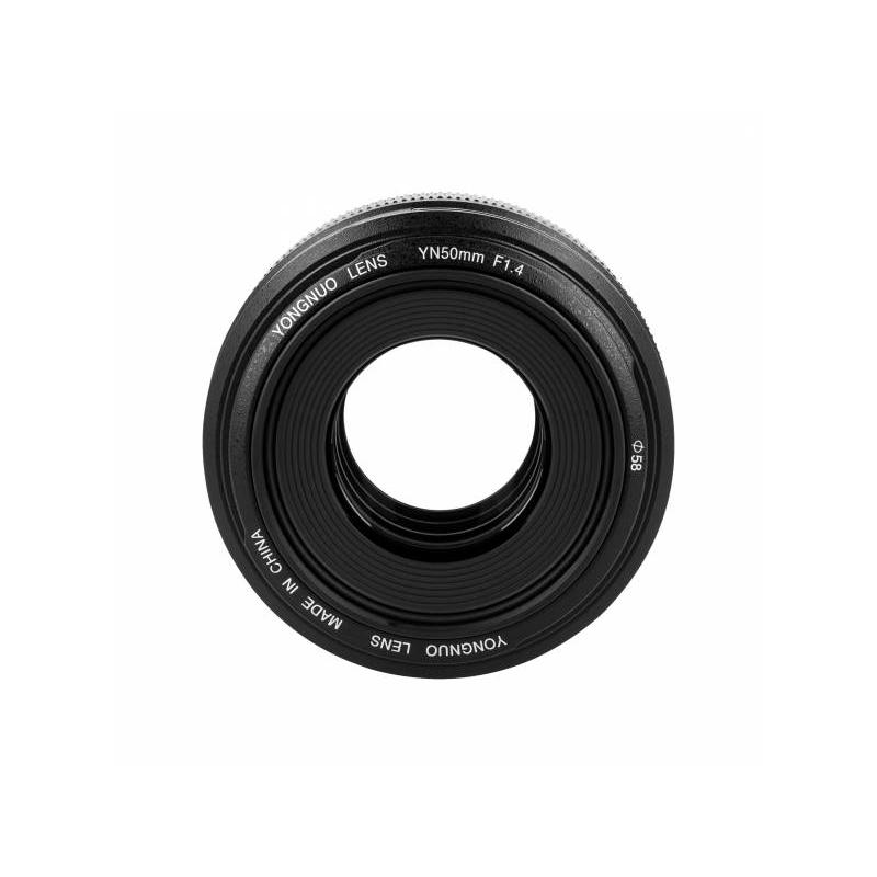 The Yongnuo YN 50mm f/1.4 is a fixed-focus standard lens designed to work with full-frame cameras equipped with the Canon EF mount. Yongnuo’s 50mm is for those looking for a super-bright portrait lens at an affordable price. The field of view of the YN 50mm f/1.4 is 46 degrees. The optical construction consists of 9 lenses arranged in 7 groups. The lens works with full-frame sensors and will also work well with cameras equipped with an APS-C sensor. The 7-blade aperture combined with the f/1.4 brightness provides an extremely shallow depth of field and unique background blur. The YN 50mm has a built-in autofocus system and the minimum focus distance is 0.45 metres. There is an MF/AF switch on the lens housing, a manual focus ring and a micro USB port for software updates. The Fifty is also equipped with a 58 millimetre filter thread. Specification model: Yongnuo YN 50mm f/1.4 mount: Canon EF image coverage: full frame Focusing: autofocus manual focal length: 50 mm minimum aperture: f/1.4 maximum aperture: f/22 number of aperture blades: 7 optical construction: 9 lenses in 7 groups minimum focusing distance: 45 cm resolution scale: 0.15x field of view: 46° filter diameter: 58 mm dimensions: 7.9 x ⌀8.0 cm (excluding the part that goes inside the camera) weight: 7.9 x ⌀8.0 cm (excluding the part that goes inside the camera) weight: 572 g Kit contents Yongnuo YN 50 mm f/1.4 lens for Canon EF decal cap for the front of the lens decal for the back of the lens
