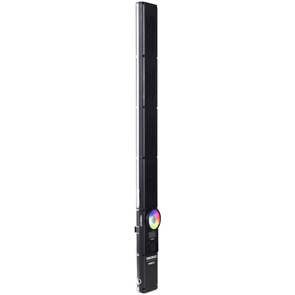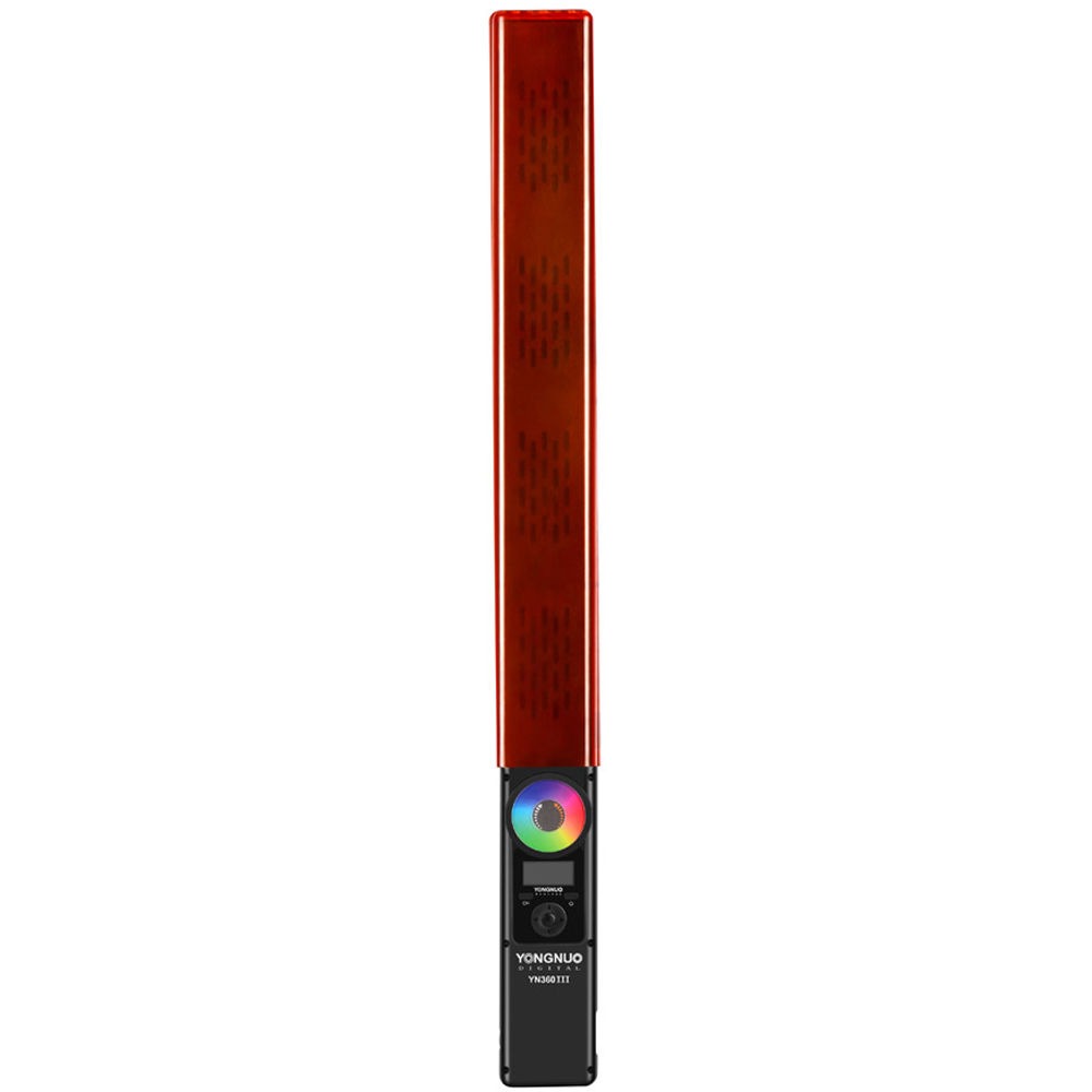 The lamp offers power, colour temperature and many colour combinations from the RGB colour space. In addition to the standard operating modes YN360 III has a number of special effects, imitating e.g. lightning, sunrise or police car light. All modes can be operated from the supplied remote control or dedicated smartphone application. Warm or cold? The light panel of the YN360 III lamp creates 360 LEDs, 180 of which emit light with a colour temperature of 3200 K and 180 with a temperature of 5500 K. The lamp offers smooth regulation and change of color temperature from hot to cold in the range of 3200 – 5500 K. The light generated is of excellent quality, as evidenced by the high colour rendering index (CRI) exceeding 95. Paint the world in yellow and blue YN360 III is additionally equipped with 60 SMD diodes emitting light in RGB colours. Strong and vivid basic colours – red, green, blue can be mixed with each other in any proportion, obtaining a huge variety of intermediate shades. Do not be afraid to experiment with light and use the full range of possibilities. Special effects In addition, the lamp offers a number of predefined special modes. YN360 III allows to simulate advanced lighting effects known from everyday life, such as: lightning flashes, climatic candlelight, sunrise, fireworks or flashing lights of a police car. Two ways to power and control The lamp will be perfect both in the studio and outdoors. It can be powered by an NP-F series battery or by a 12 V / 2 A mains adapter. The power and colour of the light can be adjusted remotely, using the supplied remote control with touch panel or using the appropriate smartphone app. It is possible to control multiple lamps assigned to eight groups at once. Other clever solutions Lightweight and compact design and a wrist strap allows for comfortable sword handling “from the hand” and standard 1/4″ lamp mounting on a tripod. Additionally, a CTO warming filter and a functional transport cover are included. The remote control will land safely in a special docking station on the lamp housing. New functions provide a wide range of possibilities for a creative creator. The Yongnuo YN360 III Light Sword is even created for unconventional play with light while filming and creating amazing photos using light painting technique. — Specification – model: Yongnuo YN360 III – number of LEDs: 360 + 60 SMD RGB – CRI ratio: 95+ – Luminous flux: 2790 lm – the angle of illumination: 55° / 110° – power regulation: smooth – colour temperature of light: 3200 K – 5500 K + RGB – estimated lifetime of the LED panel: 50000 h – control: remote control or smartphone – remote control range: up to 15 m – Fixing: 1/4″ female tripod thread – dimensions: 58.3 x 4.8 x 2.4 cm – weight: 805 g Compatibility – Battery power: NP-F series batteries (not included) – Power supply: 12 V / 2 A DC power supplies (not supplied) – Yongnuo smartphone app Set contents – LED lamp Yongnuo YN360 III – RGB, WB (3200 K – 5500 K) – remote control – CR2032 (3V) battery for remote control – warm filter (CTO) – cover – wristband