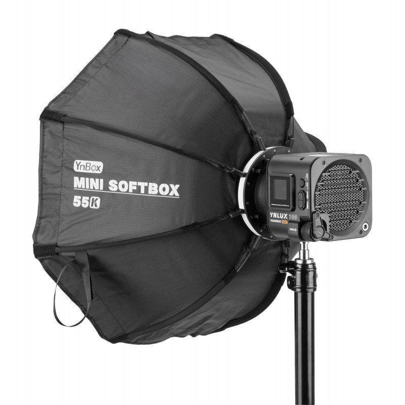 The Yongnuo YN55K is a 55cm octagonal softbox that will allow you to get soft and diffused light. It comes with two diffusion fabrics – an inner and an outer one. Thanks to them you have the possibility to fine-tune the diffusion of light and blur shadows. The softbox is equipped with a Bowens mount, which ensures wide compatibility with the Yongnuo LUX series and other lights. Thanks to a convenient mounting system based on flexible rods and strong fabrics, unfolding the softbox is quick and easy. You’ll also find a lightweight carrying bag included. Yongnuo YN55K is an excellent alternative to traditional diffusion panels and rectangular softboxes. The modifier will effectively soften the light and effectively improve the quality of your photos and video productions. Main Product Features Octagonal softbox with a diameter of 55 cm equipped with Bowens mount compatible with Yongnuo LUX100, LUX100 Pro, LUX160 and LUX200 lamps, among others fast and convenient mounting ultralight design (450g including carrying bag) a great alternative to diffusion panels and rectangular softboxes includes 2 diffusers to precisely adjust the degree of light diffusion silver interior to provide very good reflection and minimize light loss transport bag included Soft and diffused light Yongnuo YN55K is an octagonal softbox with a diameter of 55 cm. With its help, you will effectively envelop your photo set with soft and diffused light. The use of silver material inside the dome provides very good reflection that minimizes light loss. 2 diffusion fabrics included In the kit with the Yongnuo YN55K softbox, you will find 2 diffusion fabrics – an inner and an outer one. Depending on your needs, you can install only one of them or both. This solution gives you more versatility when it comes to the level of light diffusion and shadow blurring. Bowens mount The Yongnuo YN55K softbox was created specifically for LUX series lights (including the Yongnuo LUX100, LUX100 Pro, LUX160 and LUX200). However, its capabilities do not end there. The mount supporting the popular Bowens standard ensures the modifier’s wide compatibility with various types of lamps used in film and photography. So you can easily combine the Yongnuo YN55K softbox with equipment from other brands that are recognized in the industry. Instant unfolding An octagonal softbox is a great alternative to square racks of diffusion panels, as well as large 32-sided designs. The Yongnuo YN55K is distinguished by its convenient mounting system, which is based on flexible rods and strong fabrics. The softbox and accessories fit in a carrying bag included in the kit, which weighs only 450g with its contents. Compatibility lamps from the Yongnuo LUX series (including LUX100, LUX100 Pro, LUX160, LUX200) other lamps equipped with Bowens mount Specification model: Yongnuo YN55K mount: Bowens dimensions: 55 x 55 x 32.5 cm (unfolded) weight: 450 g (including carrying bag) Kit contents softbox Yongnuo YN55K internal diffusion fabric external diffusion fabric carrying bag