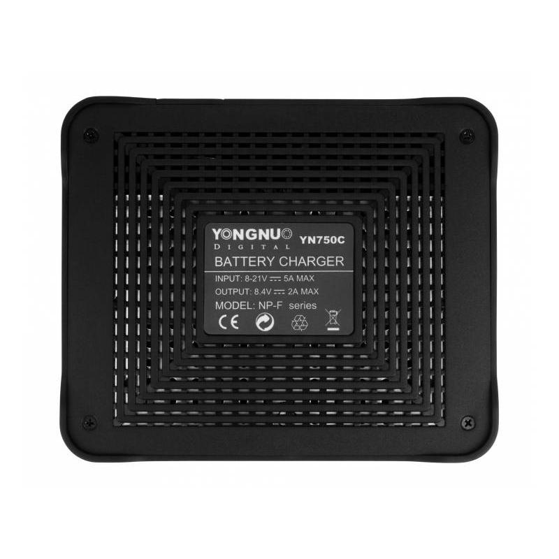 The Yongnuo YN750C charger enables safe and fast charging of NP-F series batteries in two independent channels. Thanks to its small size and compact design, the unit is extremely handy and portable. The ability to connect power supplies designed for Yongnuo LED lights of different wattages (8 – 21 V; 5 A) reduces the amount of equipment needed when working or travelling. The YN750C offers two charging modes: normal and fast. The process is controlled by an integrated circuit that protects the batteries from overheating and overcharging. The current state of charge of the cells is indicated by a four-stage LED indicator. Once the batteries are charged, the charger interrupts charging and enters a holding state. In this way, the cells can be safely left in the charger even for longer periods of time. The charger is compatible with Yongnuo NP-F series system batteries, Newell brand batteries and other replacements. Specification model: Yongnuo YN750C power supply: 5 – 21 volts; 5 amps charging current: 8.4 V; 2 A dimensions: 11.5 x 9.6 x 2.4 cm weight: 120 g Compatibility PN-F series batteries: NP-F330 NP-F530 NP-F550 NP-F570 NP-F750 NP-F770 NP-F930 NP-F930/B NP-F950 NP-F950/B NP-F960 NP-F970 NP-F970/B Yongnuo power supplies: FJ-SW0805000D FJ-SW1205000D FJ-SW1905000F Contents of the kit Yongnuo YN750C dual-channel charger for NP-F series batteries