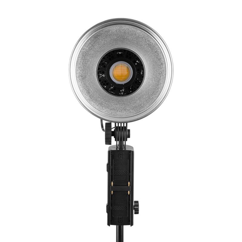 The Yongnuo LUX100 RGB LED lamp is a compact and versatile light source, ideal for filmmakers and photographers. In the “Kit” variant, you additionally get a bracket with NP-F battery slots, a diffuser that narrows the light beam to 55º, and a carrying case. The lamp is equipped with COB LED technology. The diodes allow you to obtain as many as 36,000 different colors. The device achieves a power of 120 W and a light intensity of 14,000 lux (using the diffuser). A universal Bowens mount and 31 built-in lighting effects are features that will expand the creative ways of working with the lamp. Yongnuo’s mobile app support provides remote control and operation within a larger lighting system. Main Product Features compact LED lamp with 120 W max rich color palette offers up to 36,000 unique colors Rec.2020 color space and compliance with the DCI-P3 standard enables light intensity of 14,000 lux from a distance of 1 m (using the included diffuser) adjustable light color temperature from 2000 K to 10000 K included ergonomic handle for comfortable “hands-on” operation grip equipped with 2 sockets for NP-F battery possibility to connect the handle with a traditional tripod head wide beam angle of 110º 31 built-in special effects to expand the creative use of the lamp ergonomic knob responsible for adjusting the brightness and color temperature of the light illuminated LCD display for easy control of settings Bowens system adapter allowing connection of popular light modifiers included power adapter and power cable possibility to power the lamp with 2 NP-F batteries (must be purchased separately) support for Yongnuo mobile app (iOS/Android) for remote lamp control operation in a lighting kit on one of 256 channels very quiet fan operation (max. 28 dB) transport case included Rich color palette The Yongnuo LUX100 RGB LED lamp will allow you to get almost any color of light. The HSI palette offers as many as 36,000 different combinations. However, that’s not all. The use of the Rec.2020 color space with up to 85% coverage and compliance with the DCI-P3 standard make the richness of colors even greater. This is an excellent choice for professionals who value precision and top quality light. Big power in a small package Looking for a versatile lamp that provides powerful light and won’t take up much space? The 120 Watt Yongnuo LUX100 RGB – WB (2000 K – 10000 K) will be perfect for filmmakers and photographers alike. The LED COB technology used makes it possible to achieve impressive light output in a device that measures just 12 x 12 x 12.5 cm. The lamp features a high color rendering index of 96+. The maximum light intensity with a color temperature of 5600 K from a distance of 1 m is 4280 lux. When the included lampshade is attached, this value increases to an impressive 14000 lux. In addition, the LUX100 RGB consumes significantly less energy than devices with traditional SMD LEDs. This will be especially important if you are working with rechargeable batteries and want to enjoy powerful light for as long as possible. Adjustable color temperature A wide range of color temperature adjustment will allow you to perfectly match the light to the conditions on set. This is because the Yongnuo LUX100 RGB lamp provides adjustment of this parameter in the range from 2000 K to 10000 K. Working with the device, you can also freely reduce or increase the intensity of the light. This kit will open up a whole new range of possibilities for your work on a film or photography set! Two power ways If you’re working at home or in a studio, you can easily connect the lamp to a power outlet using the 19 V / 6.31 A power supply, which you’ll find in the presented Kit. However, nothing prevents you from taking the device into the field or operating it “hand-held” and reach all the hard-to-reach places with the light. You can easily connect 2 NP-F batteries (to be purchased separately) to the mount. Thanks to them the device can operate wirelessly! remote control Convenient operation of the Yongnuo LUX100 RGB flash is provided by a backlit LCD screen, ergonomic dial and buttons. However, that’s not all. Thanks to the YONGNUO mobile app, the device can be controlled remotely from up to 50 meters away. This solution will also allow you to establish a connection with other lights. Thus, you will create an expanded lighting set with access to 256 channels of wireless communication. Special effects Want to spice up your videos with unique special effects without having to go for additional accessories and expensive equipment? The Yongnuo LUX100 RGB LED lamp offers 31 thematic modes that will simulate an ambulance, fire truck, rainbow, pulsating SOS signal, sunset, explosion or paparazzi camera flashes, among others. You’ll trigger all effects from the lamp or mobile app. Take advantage of the special modes and see for yourself how the magic of Hollywood works! Bowens mount Thanks to the universal Bowens mounting system, which is extremely popular among filmmakers and photographers, you can easily combine the Yongnuo LUX100 RGB LED flash with light modifiers such as streamers, softboxes, gates or canopies. With these, you will be able to further customize the nature of the lighting for your shots and frames. In the Kit you will find one such modifier – it is a diffuser that will allow you to effectively increase the intensity of the light. Silence on set! When you choose the Yongnuo LUX100 LED flash, you don’t have to worry about noise interfering with the video recording process. The device is equipped with extremely quiet fans that adjust to the ambient temperature. This one can be measured up to 10 times per second, ensuring perfect precision of operation. The noise level generated by the fans does not exceed 28 dB! Convenient transport Convenient transportation and safe storage is ensured by the sturdy carrying case included with the Yongnuo LUX100 RGB Kit. In it you will find compartme