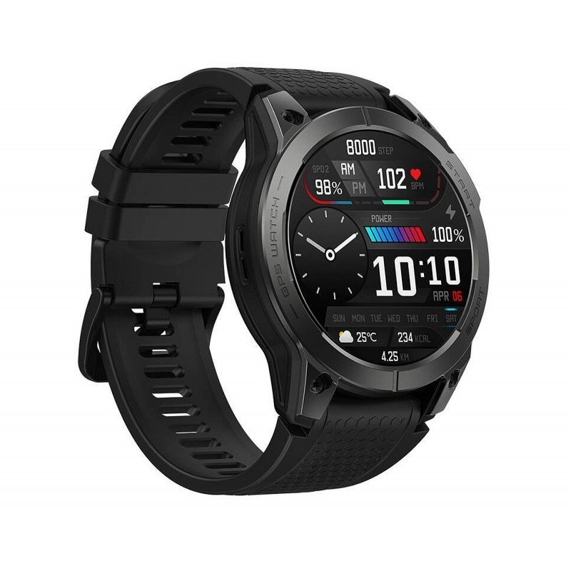 The Zeblaze Stratos 3 smartwatch – black The Stratos 3 is Zeblaze’s flagship smartwatch for 2023. Its case and envelope are made of zinc-plated metal alloy with a durable carbon coating. The watch offers a 1.43-inch AMOLED Ultra HD touchscreen, providing vivid colors and brightness of up to 1,000 nits. The display, which offers more than 150 different dials, can operate in “always-on” mode. The device supports 4 navigation systems: GPS, GLONASS, Galileo and Beidou. With a long-lasting battery, it can operate for up to 45 days in economy mode. It can monitor heart rate and blood saturation, as well as analyze sleep, count steps and calories burned. It is an ideal choice for active, health-conscious people looking for motivation to move. Main Product Features the flagship model of the Zeblaze smartwatch for 2023 bezel and envelope made of zinc-plated metal alloy with carbon coating high-quality AMOLED Ultra HD touchscreen “always-on” mode (non-dimming screen) a 1.43″ diagonal display offering vivid and natural colors access to more than 150 different dials feeling silicone strap with steel clasp access to 4 different navigation systems – GPS, GLONASS, GALILEO and BEIDOU up to 45 days of operation on a single charge (in economy mode) up to 545 minutes of uninterrupted talk time on a single charge measures heart rate and blood saturation, sleep and activity analysis enables counting of steps and calories burned calendar, weather, alarms, reminders and smartphone notifications reminders to take medication and drink water regularly an ideal choice for active, health-conscious people looking for motivation to move intuitive and easy to use compatible with Android (from version 4.4) and iOS (from version 8.2) synchronization of data with Apple Health or Strava apps, among others Flagship 3rd generation Experience the power of the third generation of Zeblaze’s flagship smartwatch. Stratos 3 brings you even more innovations and modern features – both inside and out. The GPS-enabled device will allow you to make phone calls from your wrist, as well as provide dozens of innovative features. Whether you’re looking to boost productivity, track health parameters or personalize your activity data, the smartwatch is designed to streamline your daily rhythm and improve your quality of life. AmolED Ultra HD screen The 1.43″ AMOLED Ultra HD screen with a resolution of 466 x 466 pixels will delight you with unparalleled image quality and clarity. The display provides exceptional brightness of up to 1,000 nits. Regardless of the lighting conditions, every detail will be exceptionally clear, providing you with a comfortable use of a wide range of functions. Adequate protection is guaranteed by Corning Gorilla Glass. Support for “always-on” mode means that the smartwatch is always ready to serve you, without having to touch the screen to wake it up. With access to over 150 different themes, you can personalize the dial to match your own style. 4 navigation systems The Zeblaze Stratos 3 smartwatch will never let you get lost, whether you’re traveling by car, traversing mountain trails or running through the woods. This is because the watch supports up to 4 satellite navigation systems. It works not only with an efficient GPS signal, but also GLONASS, GALILEO and BEIDOU. The device guarantees lightning-fast performance for fast and precise location tracking. This smartwatch is the perfect companion for those who are constantly exploring new places. Your personal trainer The Zeblaze Stratos 3 smartwatch is a great choice for people who lead an active lifestyle. Offering more than 100 professional workout modes, it will allow you to monitor your activities and break more records. Whether you’re walking, running, biking or playing other sports (both indoors and outdoors), the Zeblaze Stratos 3 will adapt to you, providing precise tracking of your movements. The watch will provide detailed activity information, such as GPS-based distance covered, pace, heart rate ranges and calories burned. Norma IP68 A quick shower? A mud bath? Walrushing? Or maybe a running workout during a rainy day? The Zeblaze Stratos 3 smartwatch can be with you during any of these activities. The IP68-compliant design ensures complete dust-proofing, as well as resistance to frequent contact with water and moderate submersion. In-care-of-your-health With a Zeblaze Stratos 3 smartwatch on your wrist, you can better monitor your health. This smartwatch provides continuous monitoring of heart rate, blood oxygenation and stress levels. It also provides a step counter and automatic goal setting based on your activity level. In addition, advanced features will allow you to monitor the quality of your sleep, providing valuable data to help improve your daily habits and overall fitness. There are also breathing exercises and the ability to track your menstrual cycle. Wrist-level conversations The Zeblaze Stratos 3 smartwatch will allow you to stay in touch with your loved ones with the ability to make phone calls directly from your wrist. You no longer need to reach for your smartphone. This is because the device is equipped with a high-quality speaker and microphone. Bluetooth connectivity will ensure optimal sound quality and call clarity, no matter what app you use to make voice calls. Assistant-on-wrist By working with your smartphone, you can control music and camera, among other things. The “Find My Phone” function will allow you to instantly track your device when you happen to forget where you put it(s). Zeblaze Stratos 3 also features a stopwatch, a timer, time synchronization via GPS, access to weather information, as well as notifications if you sit in one place for too long and reminders to take medication or drink water. Long runtime The Zeblaze Stratos 3 watch is equipped with a durable 400 mAh battery. This allows it to achieve an impressive standby time of up to 45 days (in power-saving mode). If you 